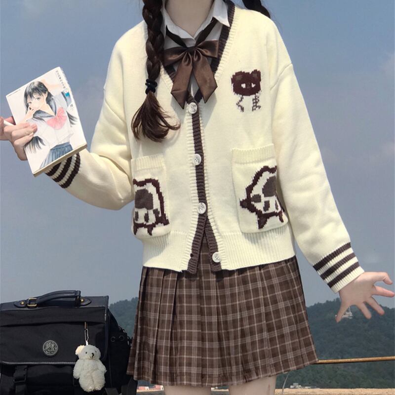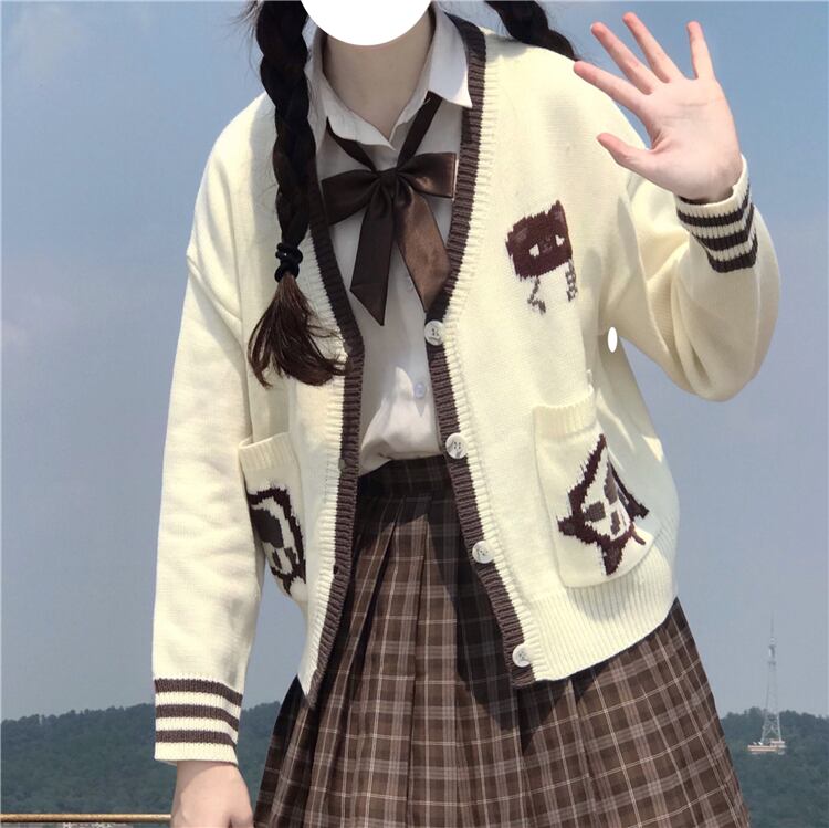 ✞ ニットカーディガンジャケット ウィンターVネックポケットジャカード長袖スリーブセーター ロング スウィート 冬物 ✞ゴスロリ SM ミリ 甘ロリ クラロリ 和ロリ エレガント 黒ロリ 姫ロリ 華ロリ BB-BB99731279697