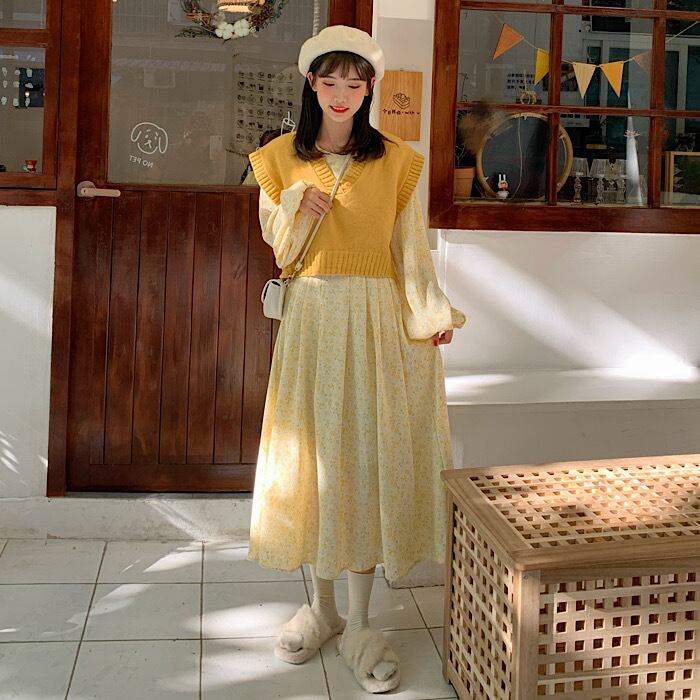 ✞ スカート オータムラウンドネック花柄スリーブロングイエロードレス ワンピース スウィート 秋物 ✞ゴスロリ SM ミリ 甘ロリ クラロリ 和ロリ エレガント 黒ロリ 姫ロリ 華ロリ BB-BB79800283369