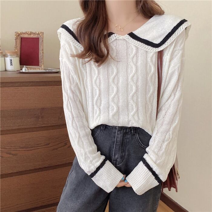 ✞ オータムネイビーセーター 大人女子☆ショートカジュアルニット ロング スウィート 秋物 ✞ゴスロリ SM ミリ 甘ロリ クラロリ 和ロリ エレガント 黒ロリ 姫ロリ 華ロリ BB-BB18286139085