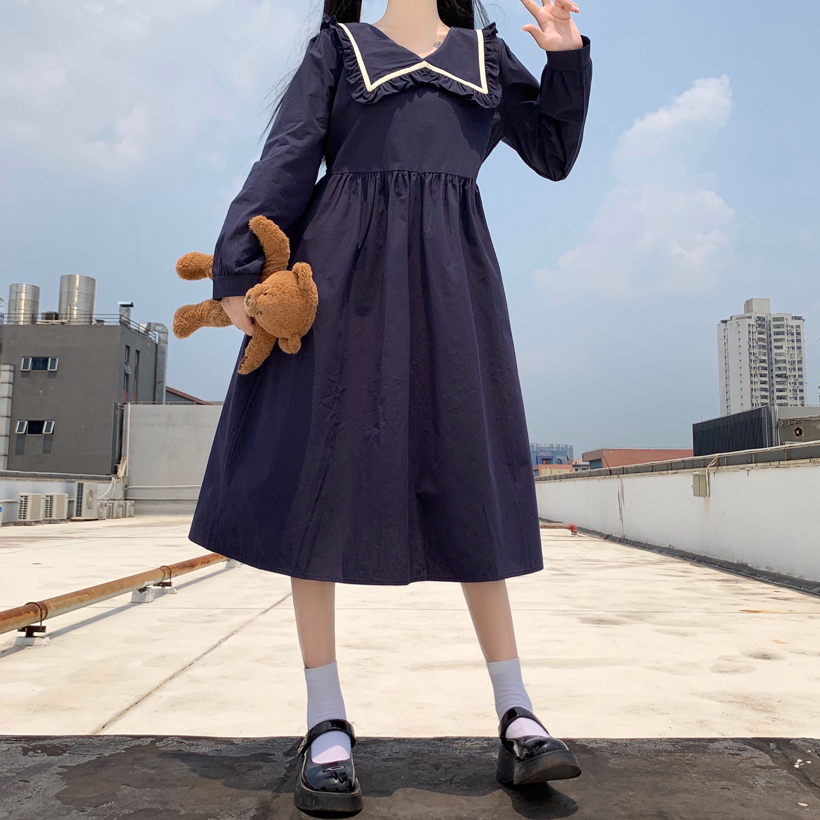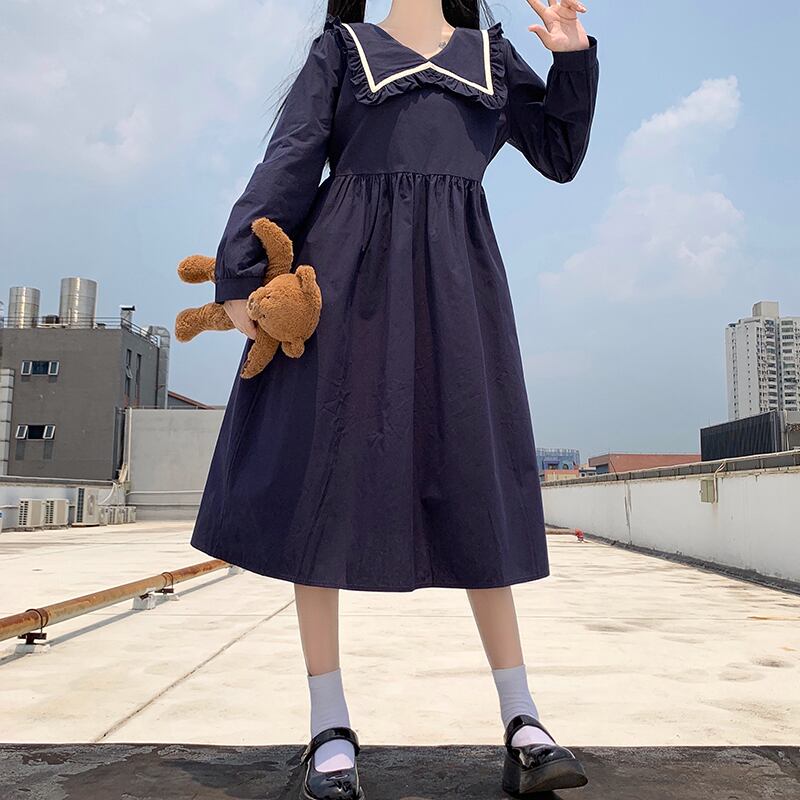 ✞ ♡ネイビーAラインスカート 膝丈 ひざ丈 ロング スウィート ✞ゴスロリ SM ミリ 甘ロリ クラロリ 和ロリ エレガント 黒ロリ 姫ロリ 華ロリ BB-BB32985658227