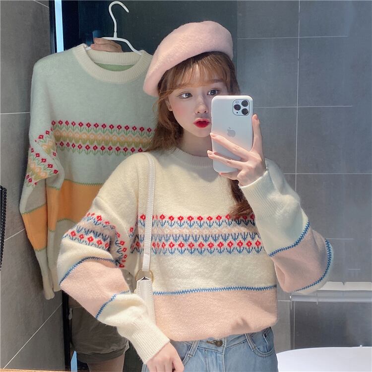 ✞ ジャカードセーター カジュアル♡プルオーバー ロング スウィート ✞ゴスロリ SM ミリ 甘ロリ クラロリ 和ロリ エレガント 黒ロリ 姫ロリ 華ロリ BB-BB27990583869