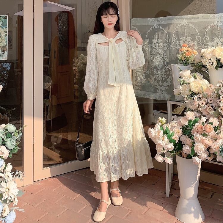 ✞ ラウンドネックリボンハイウェスト ロング スウィート ✞ゴスロリ SM ミリ 甘ロリ クラロリ 和ロリ エレガント 黒ロリ 姫ロリ 華ロリ BB-BB16060075288