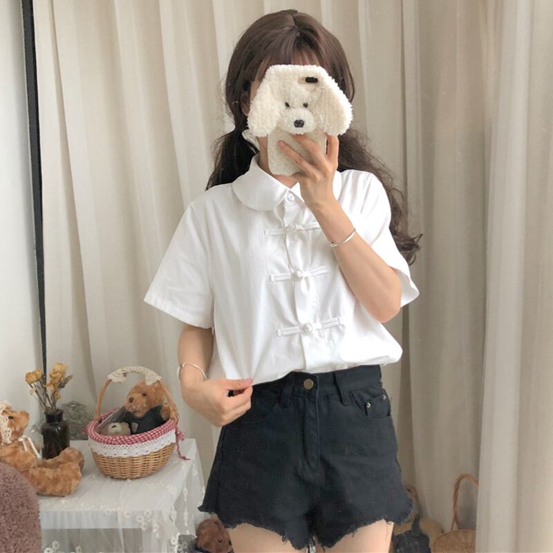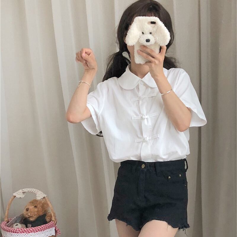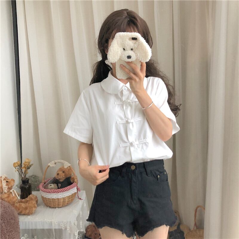 ✞ スタンダードボタンシャツブラウススリム白 ホワイト レトロ ガーリー ✞ゴスロリ SM ミリ 甘ロリ クラロリ 和ロリ エレガント 黒ロリ 姫ロリ 華ロリ BB-BB62594083517