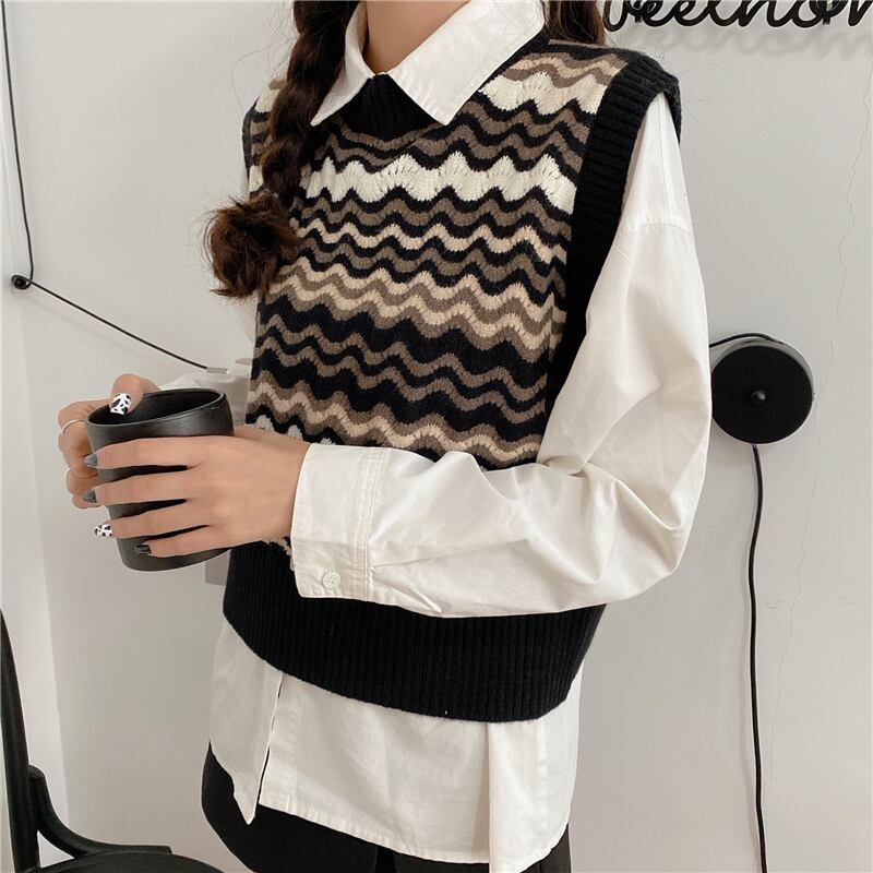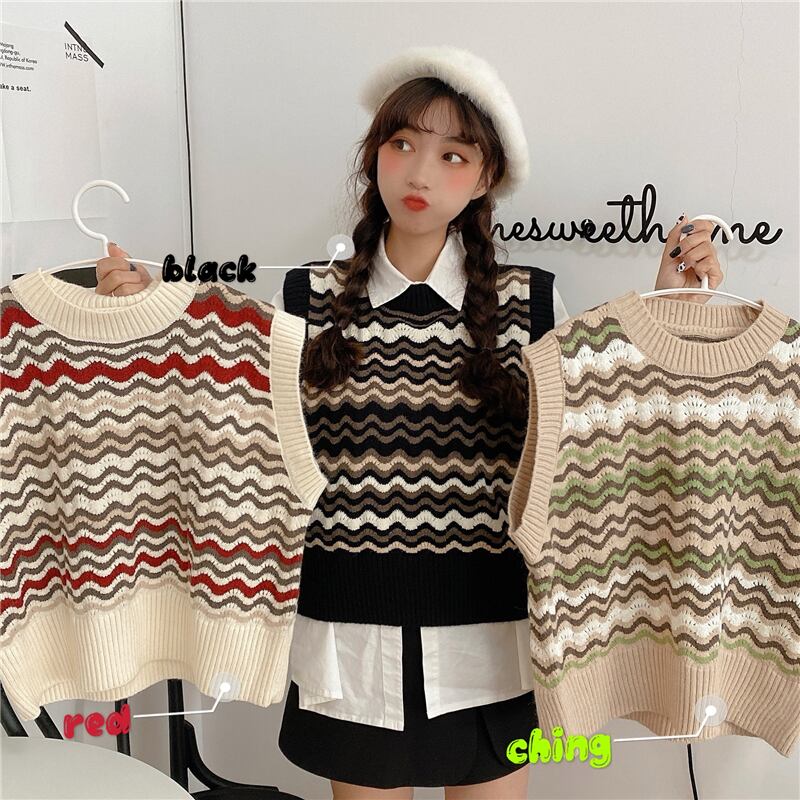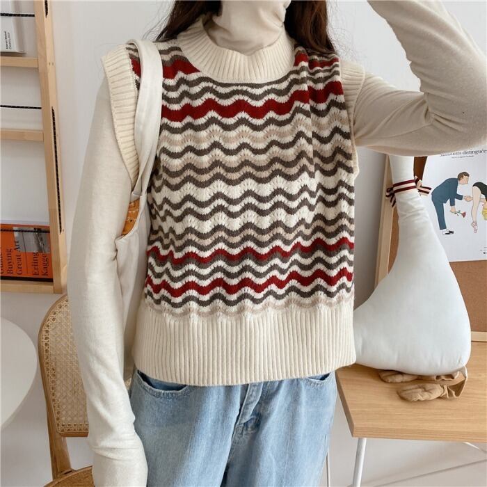 ✞ ウィンタースタンダードストライプニット大人女子☆♡ノースリーブセーター レトロ 冬物 ✞ゴスロリ SM ミリ 甘ロリ クラロリ 和ロリ エレガント 黒ロリ 姫ロリ 華ロリ BB-BB61579938697