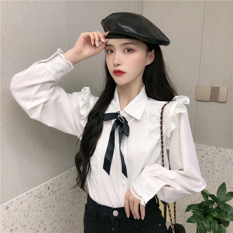 ✞ リボンレースシャツブラウス♡白トップス ロング ホワイト スウィート ✞ゴスロリ SM ミリ 甘ロリ クラロリ 和ロリ エレガント 黒ロリ 姫ロリ 華ロリ BB-BB86509882022