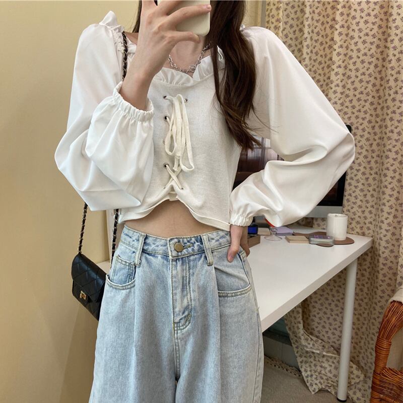 ✞ Tシャツ シフォンスリーブニットショートトップス スウィート スクウェア ステッチ ✞ゴスロリ SM ミリ 甘ロリ クラロリ 和ロリ エレガント 黒ロリ 姫ロリ 華ロリ BB-BB84004058894