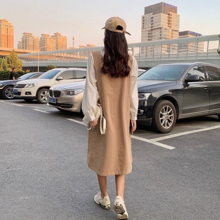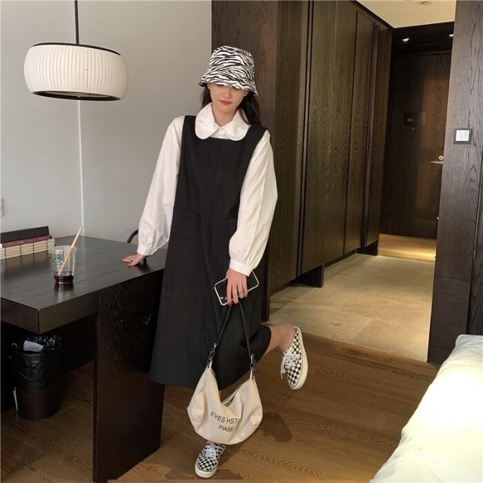 色:白いシャツワンピース,アプリコットストラップワンピース,ブラックストラップスカートワンピース