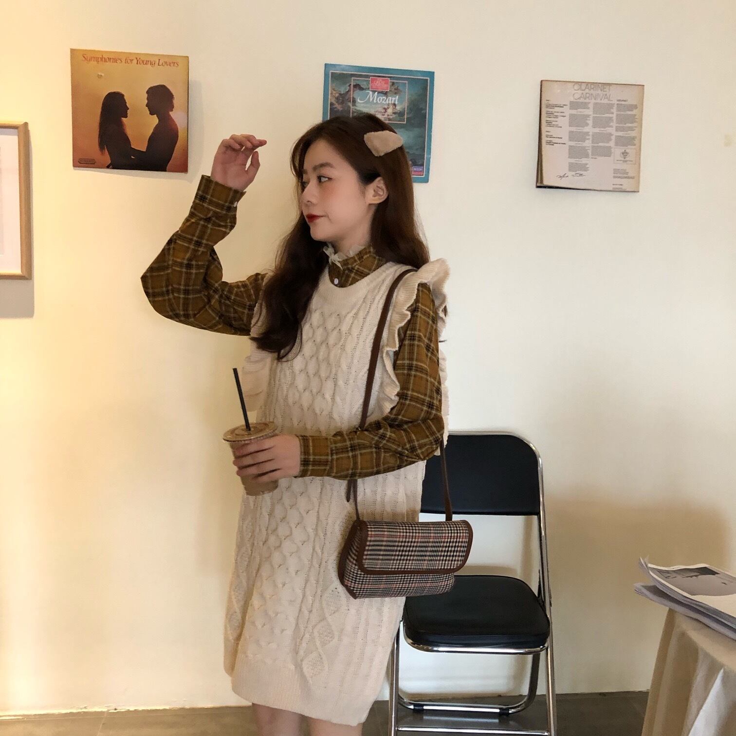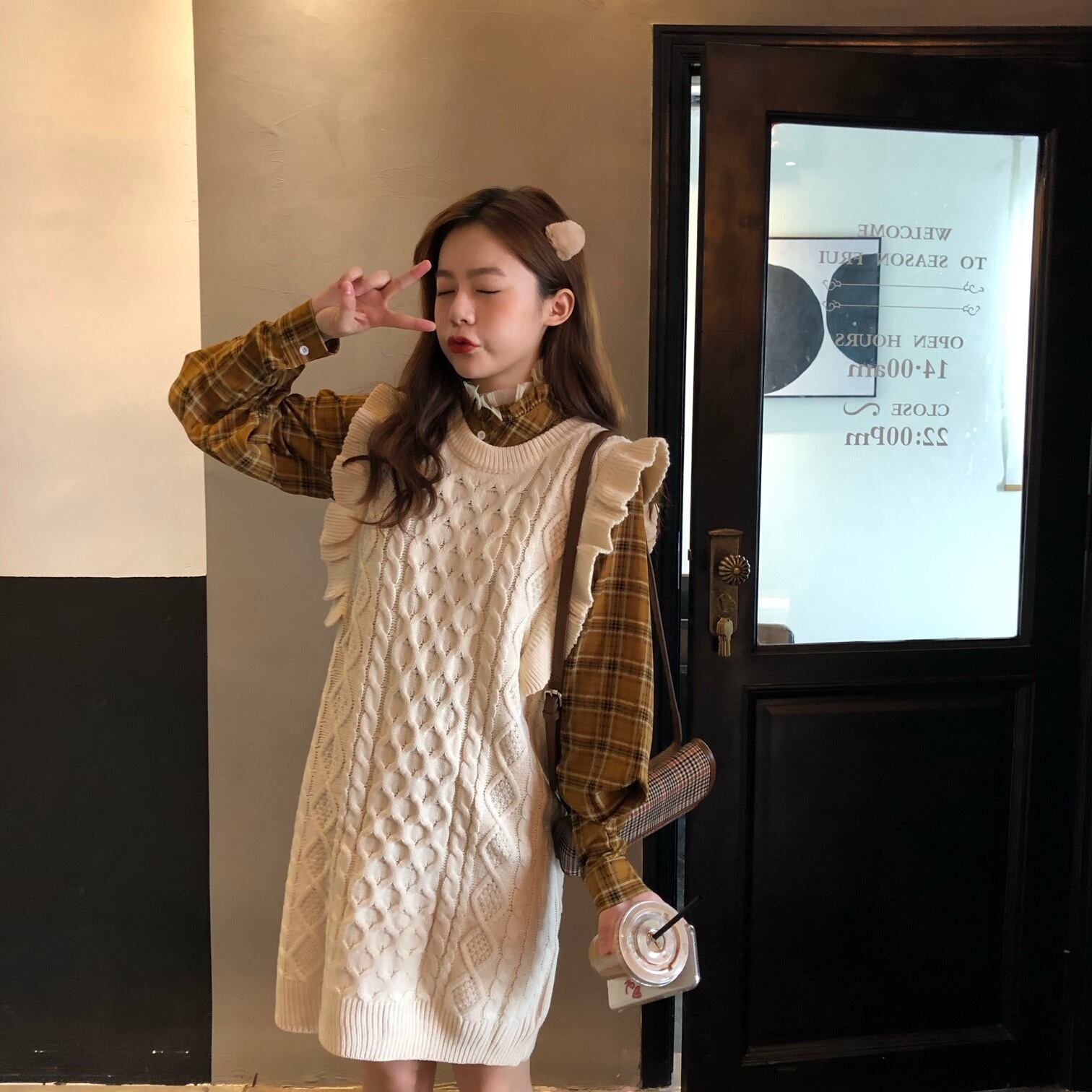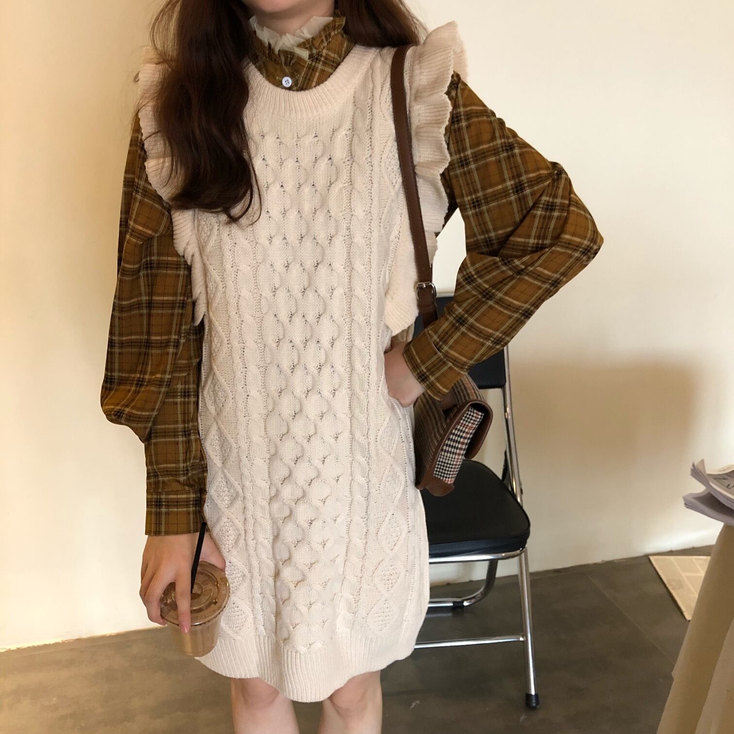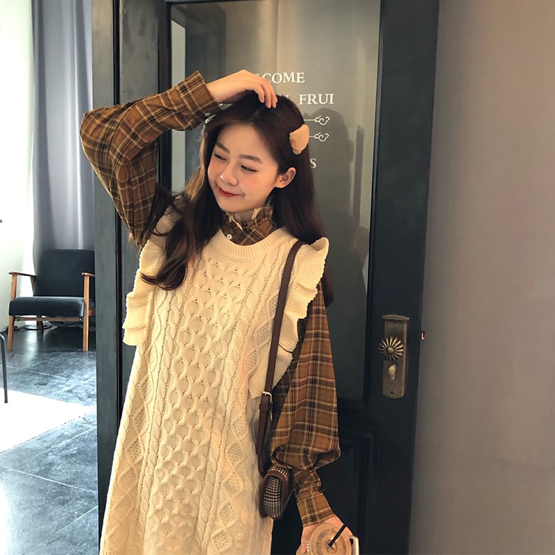 ✞ノースリーブニットフリルセーターチュニック or チェックシャツ スカート レトロ スウィート ✞ゴスロリ SM ミリ 甘ロリ クラロリ 和ロリ エレガント 黒ロリ 姫ロリ 華ロリ BB-BB659550479