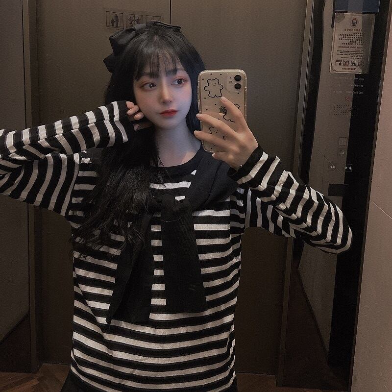 ✞ ストライプレーススリムフィットセーター トップス 大人女子☆ ロング レースアップ ✞ゴスロリ SM ミリ 甘ロリ クラロリ 和ロリ エレガント 黒ロリ 姫ロリ 華ロリ BB-BB73152685758