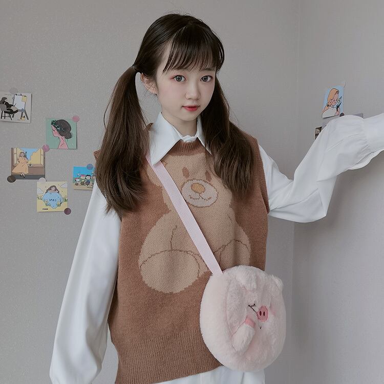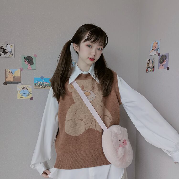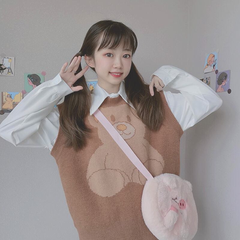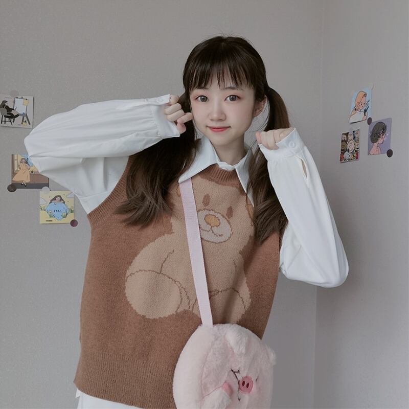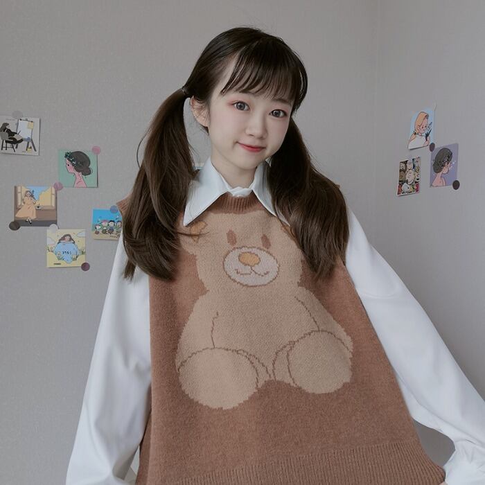 色:白インナーシャツシングル,コーヒー色ビッグデブベアベストシングルピース