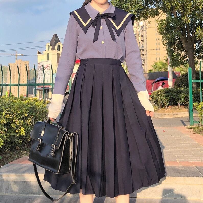 ✞ ネイビーセーター ハイウェストプリーツスリムスカート ロング スウィート ✞ゴスロリ SM ミリ 甘ロリ クラロリ 和ロリ エレガント 黒ロリ 姫ロリ 華ロリ BB-BB91981117210