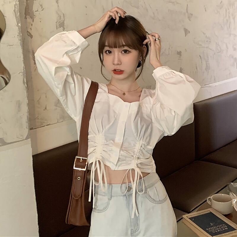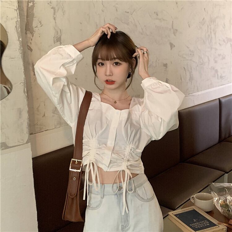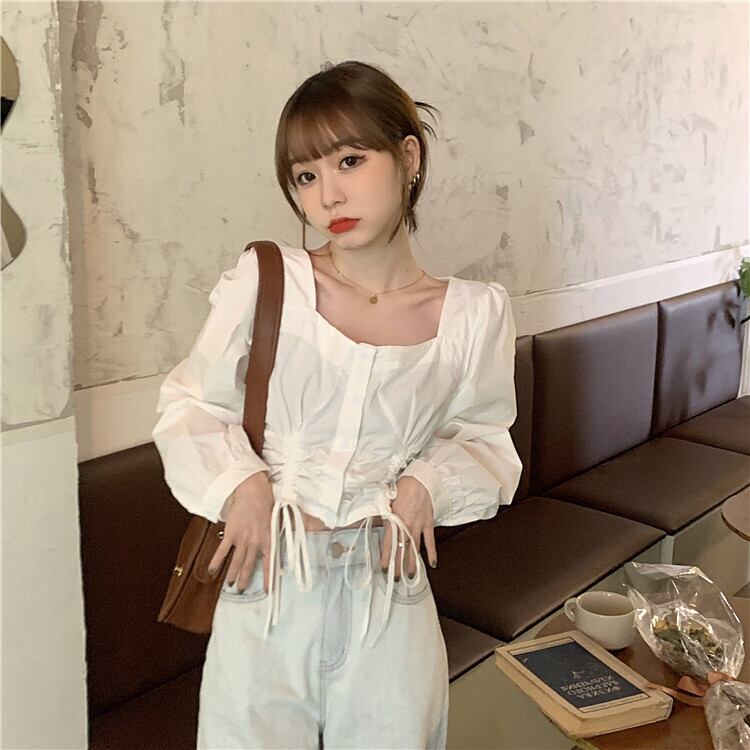 ✞ ギャザーショートシャツブラウス白トップス 大人女子☆ ロング ホワイト スウィート スクウェア ✞ゴスロリ SM ミリ 甘ロリ クラロリ 和ロリ エレガント 黒ロリ 姫ロリ 華ロリ BB-BB3990386649