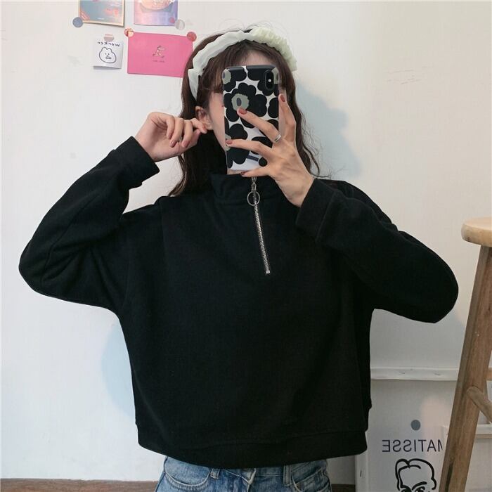 ✞ カジュアルジッパーセーター ♡ソリッド カラーシャツブラウス ロング ソリッドカラー ✞ゴスロリ SM ミリ 甘ロリ クラロリ 和ロリ エレガント 黒ロリ 姫ロリ 華ロリ BB-BB97788488687