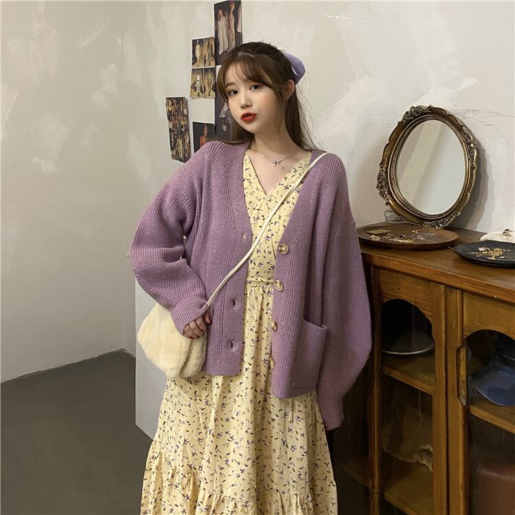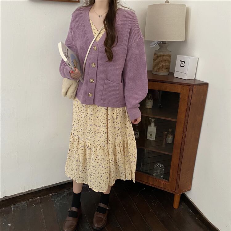 ✞ニットセーター カーディガンジャケット or Vネック花柄ロングワンピースドレスOP レトロ ✞ゴスロリ SM ミリ 甘ロリ クラロリ 和ロリ エレガント 黒ロリ 姫ロリ 華ロリ BB-BB51299943914