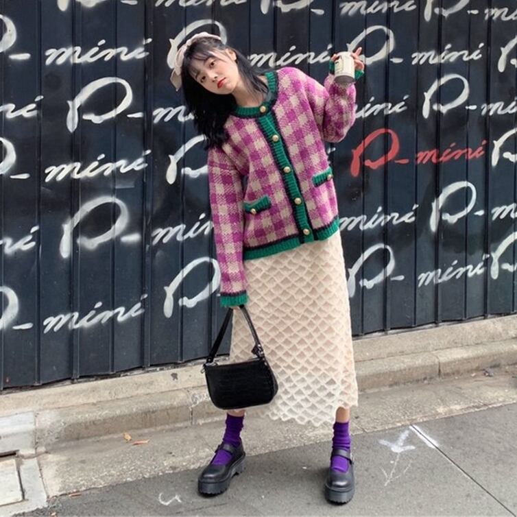 色:黒セーターシングル,パープルセーターシングル,ブラックスカートワンピース,アプリコットスカートワンピース