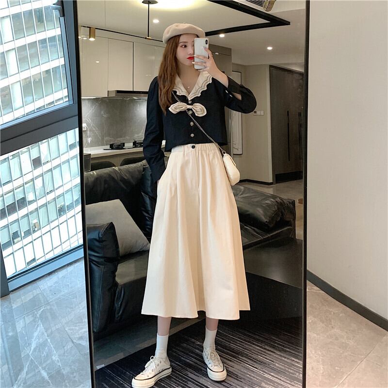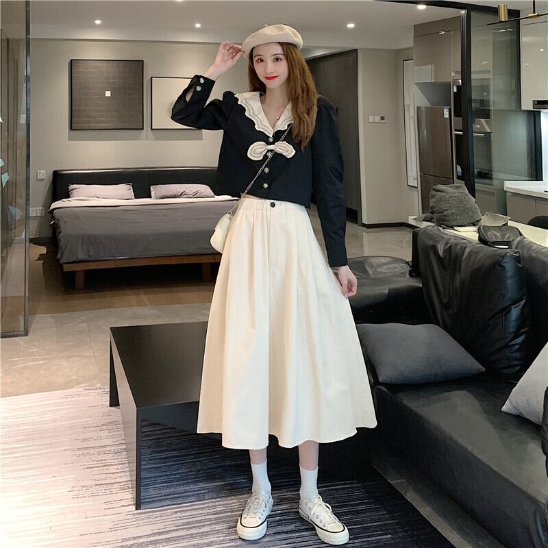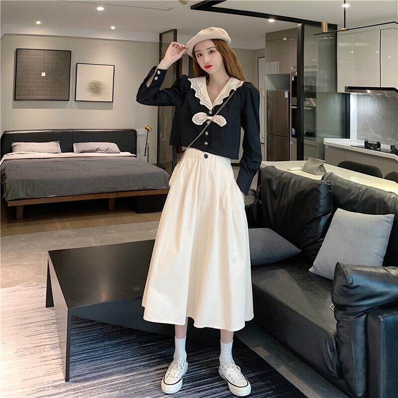 色:ホワイトスカートワンピース,黒シャツワンピース
