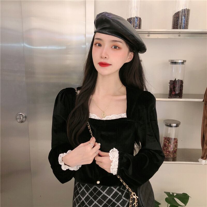 ✞ベルベットドレープシフォンシャツブラウス 大人女子 スリーブ長袖 ロング レトロ スクウェア ✞ゴスロリ SM ミリ 甘ロリ クラロリ 和ロリ エレガント 黒ロリ 姫ロリ 華ロリ BB-BB35193414434