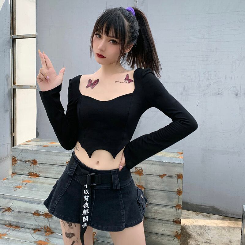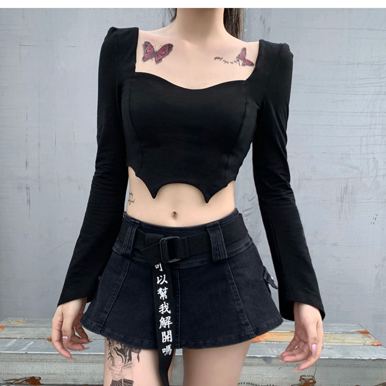 ✞✝✞ ブラックスリーブTシャツ シャツブラウス♡ボタン大人女子☆ ロング スクウェア ✞✝✞ ゴスロリ SM ミリ 甘ロリ クラロリ 和ロリ エレガント 黒ロリ 姫ロリ 華ロリ AA-AA89665981346