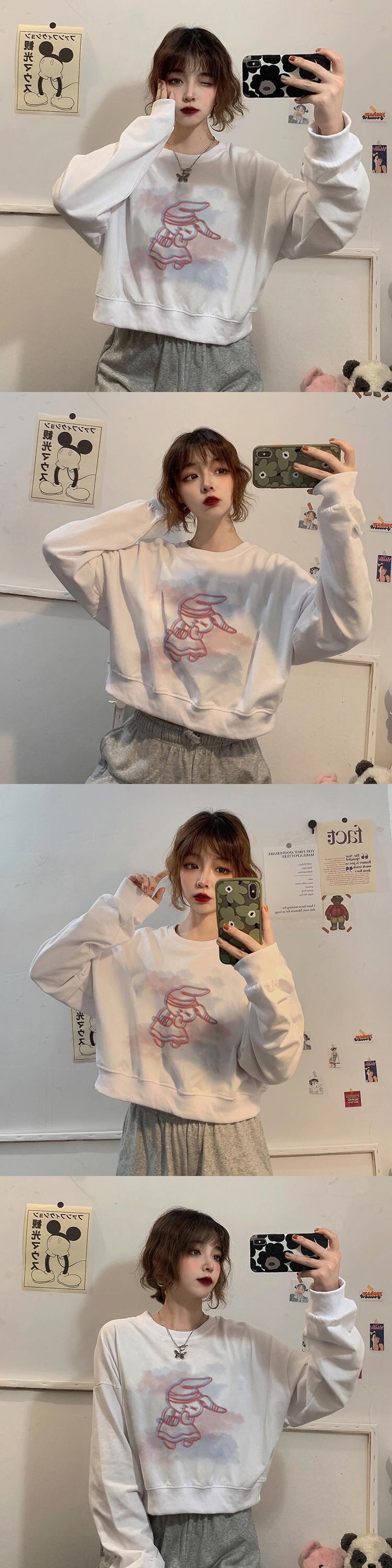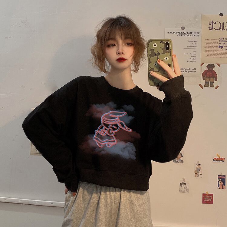 色:ホワイトサッドラビットショートセーター,ブラックSadラビットショートスウェットシャツ