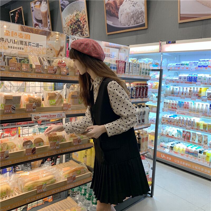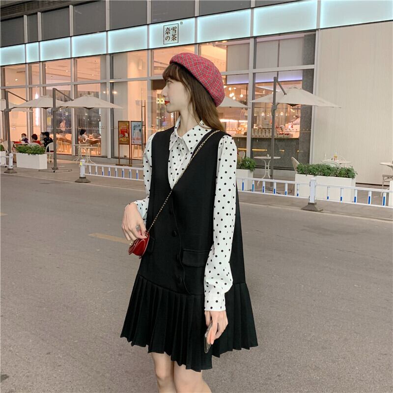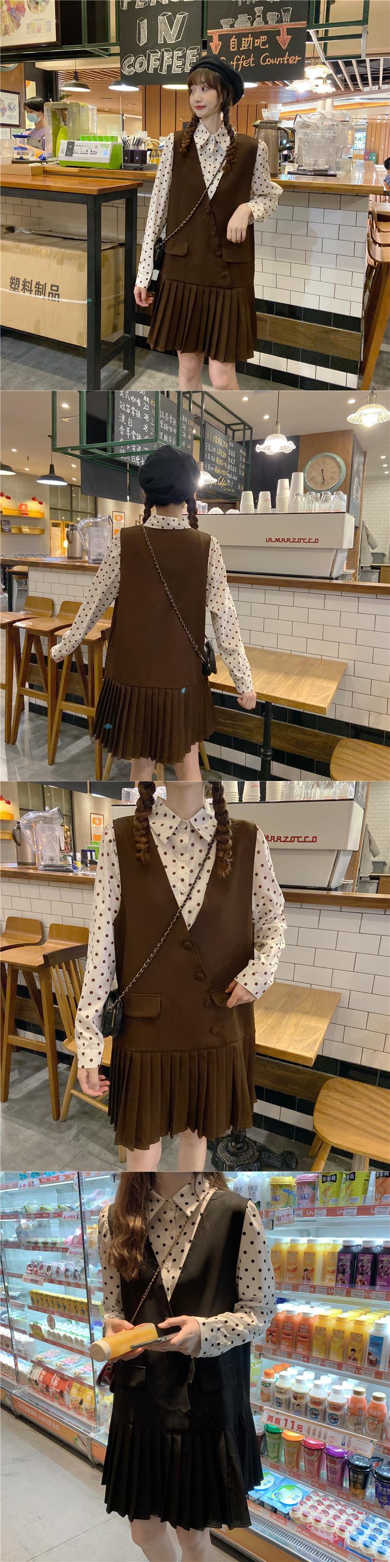 色:黒水玉シャツワンピース,ブラウン水玉シャツワンピース,ブラックベストワンピース,ブラウンベストワンピース