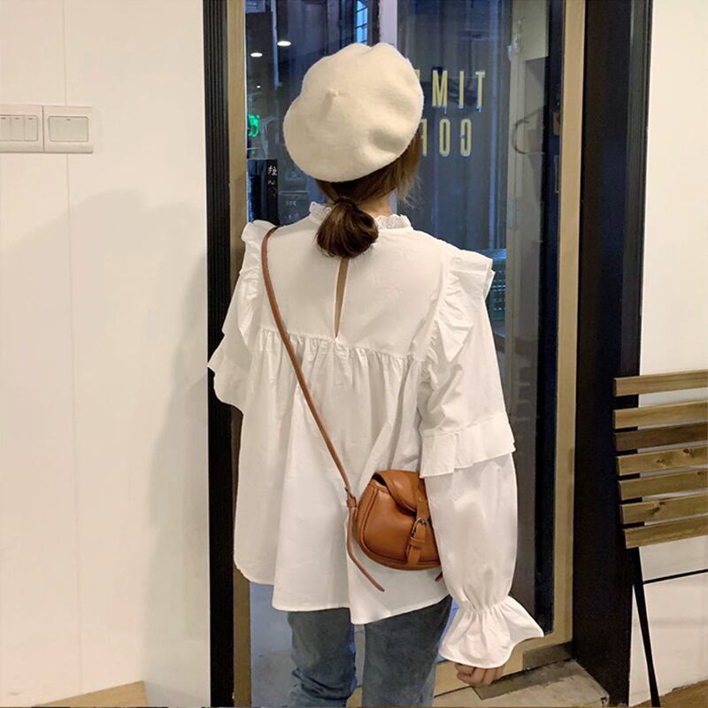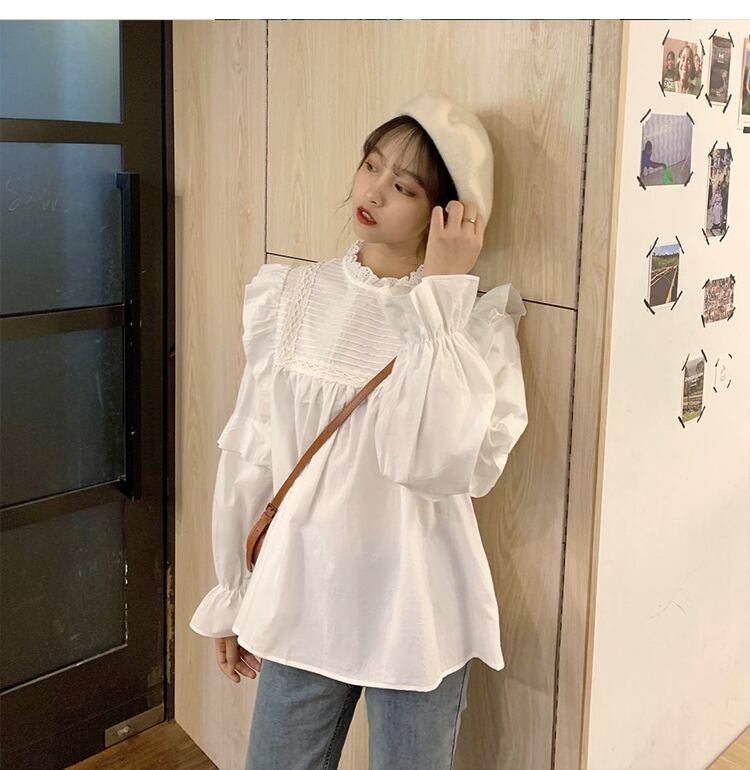 ✞ レースラウンドネックスリーブ白シャツブラウス ホワイト ✞ゴスロリ SM ミリ 甘ロリ クラロリ 和ロリ エレガント 黒ロリ 姫ロリ 華ロリ BB-BB98443872639