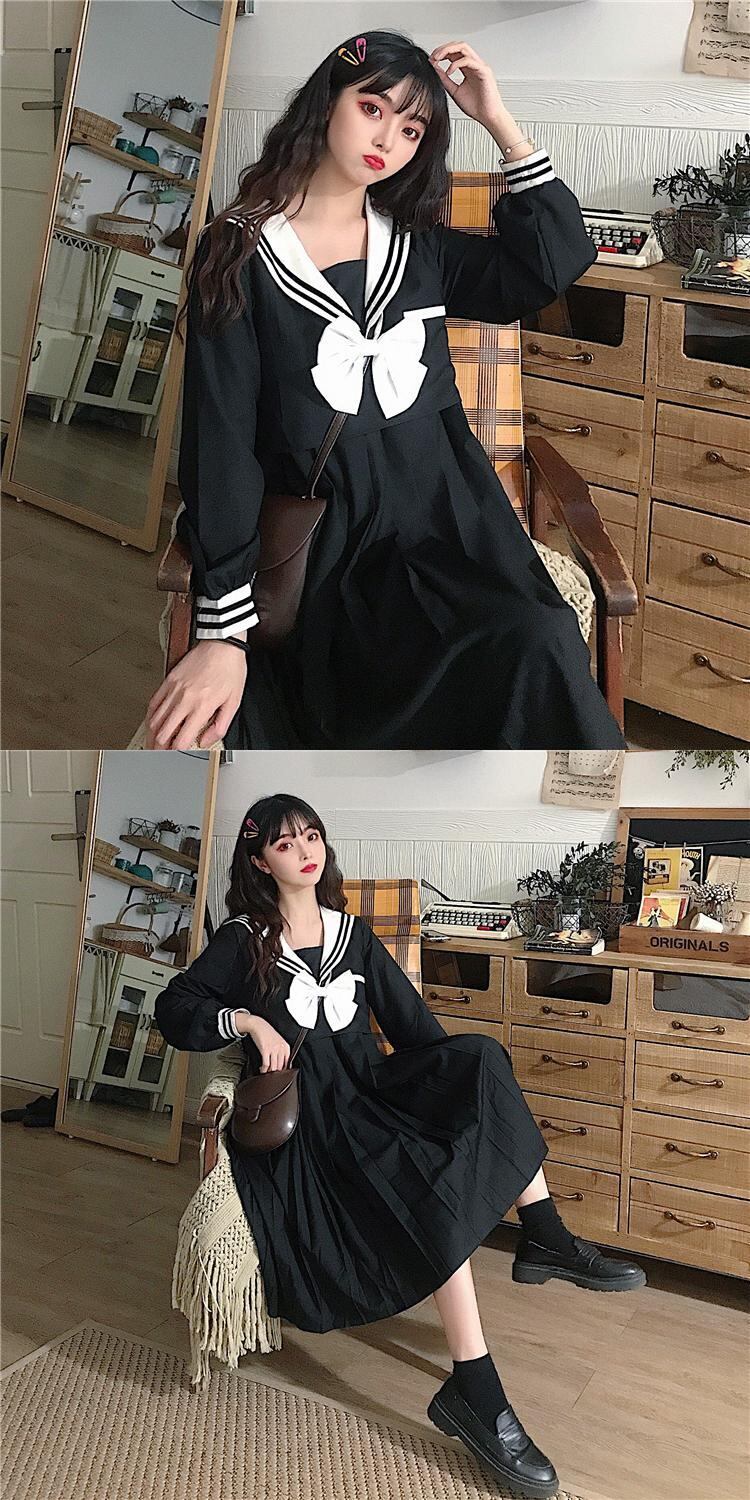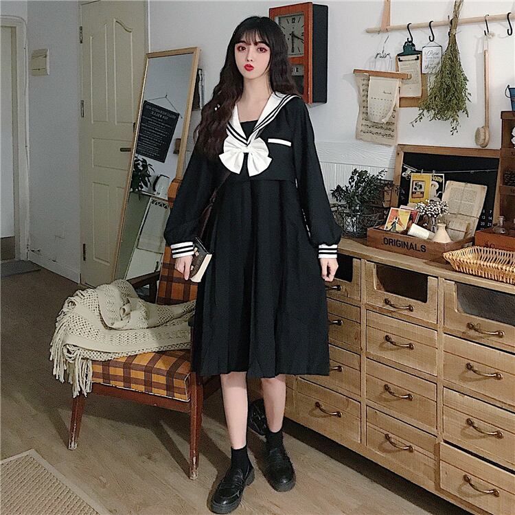 ✞ スカート 大人女子☆リボンネイビー長袖スリーブ ロング スウィート ✞ゴスロリ SM ミリ 甘ロリ クラロリ 和ロリ エレガント 黒ロリ 姫ロリ 華ロリ BB-BB12378073214