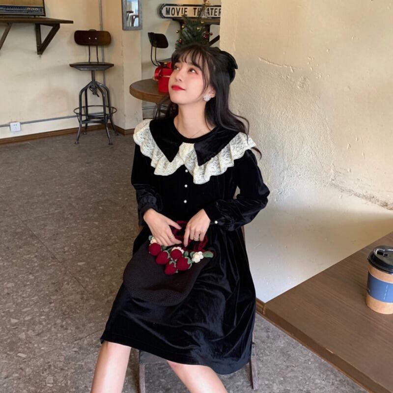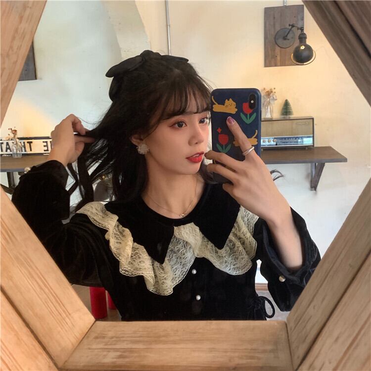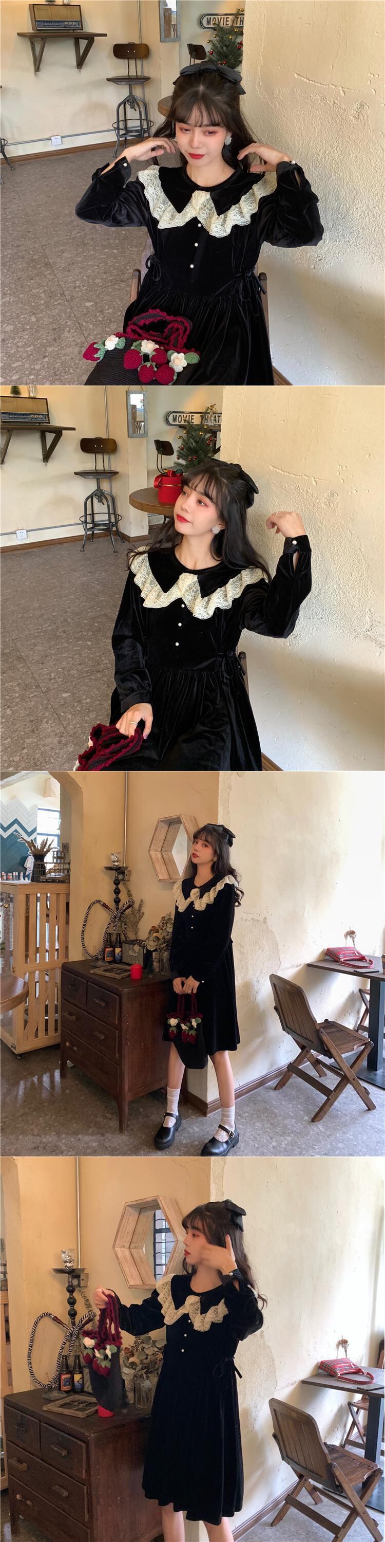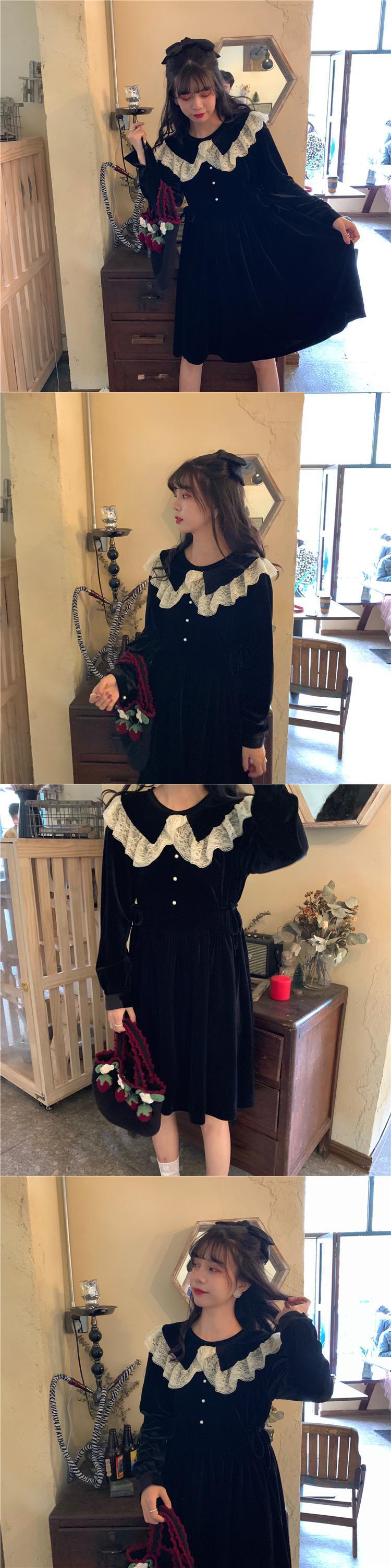 ✞ スタンダードレースサイドスリム長袖スリーブ ロング レトロ スウィート ✞ゴスロリ SM ミリ 甘ロリ クラロリ 和ロリ エレガント 黒ロリ 姫ロリ 華ロリ BB-BB69569013659