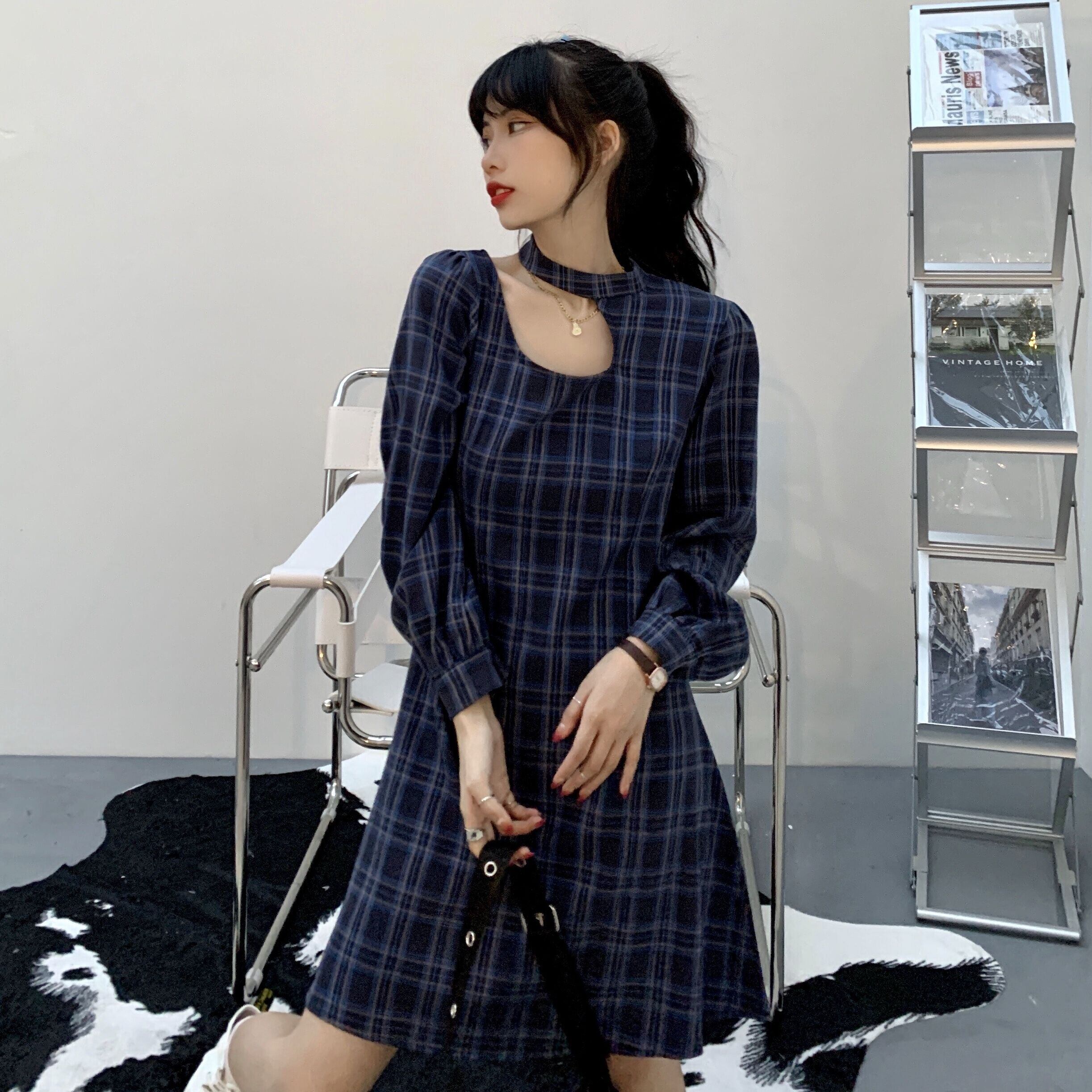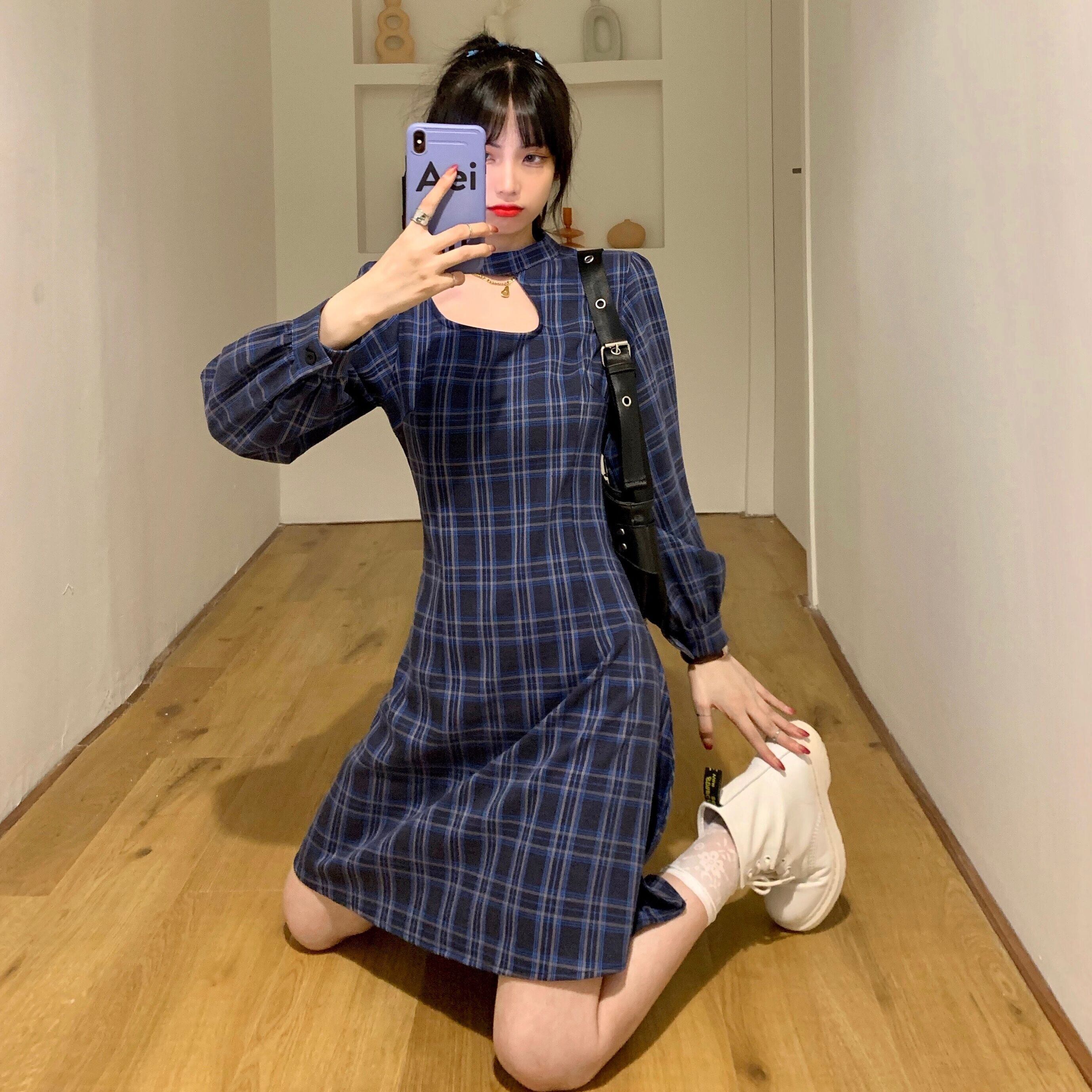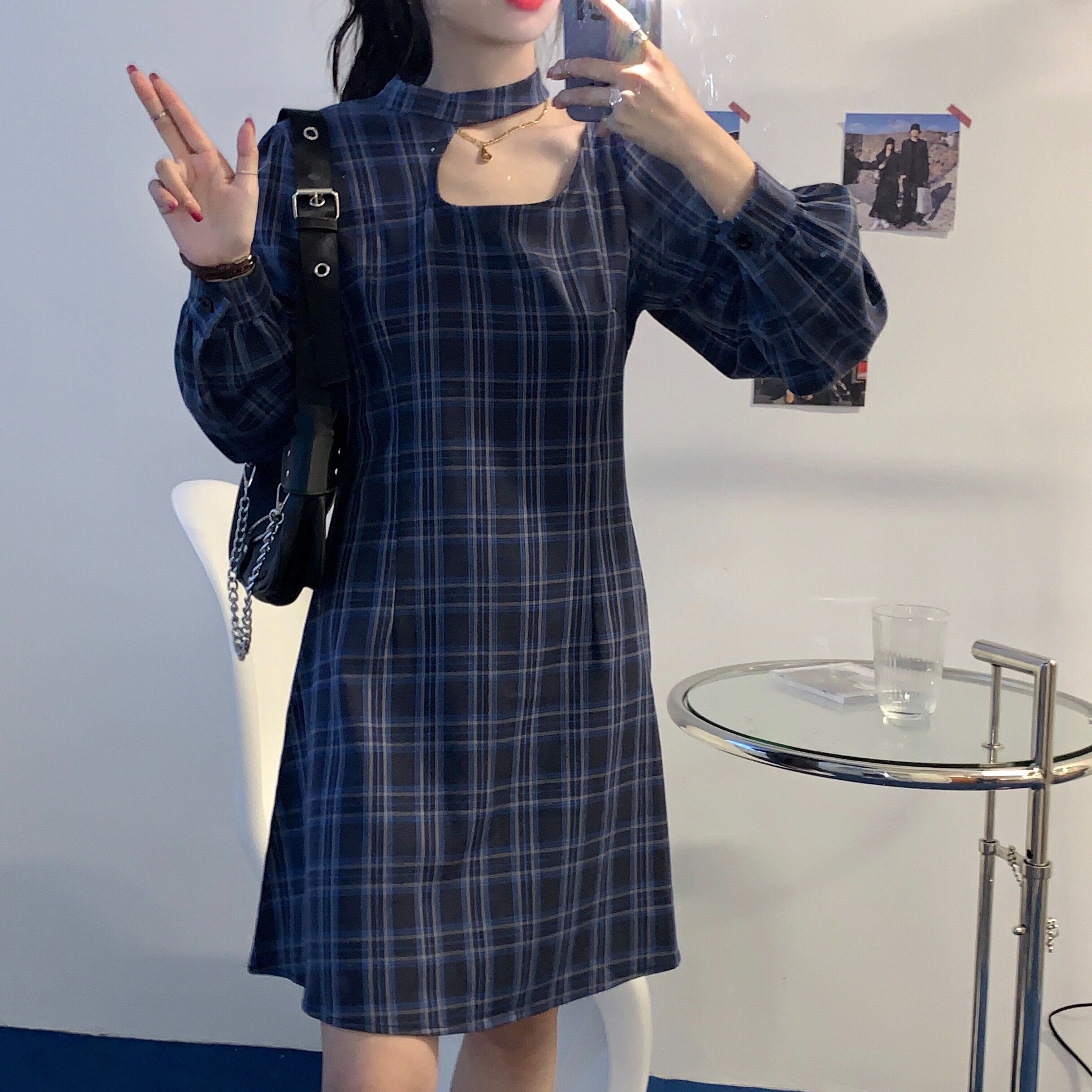 ✞ チェック柄スカート ホルターラウンドネックバック長袖スリーブスリム ロング スウィート ✞ゴスロリ SM ミリ 甘ロリ クラロリ 和ロリ エレガント 黒ロリ 姫ロリ 華ロリ BB-BB97525481247