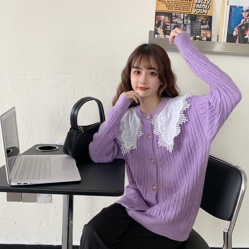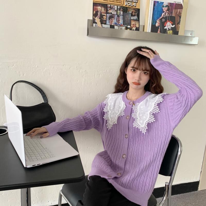 ✞ ニットカーディガンレースラウンドネック長袖スリーブセーター ジャケット ロング スウィート ✞ゴスロリ SM ミリ 甘ロリ クラロリ 和ロリ エレガント 黒ロリ 姫ロリ 華ロリ BB-BB77255291770