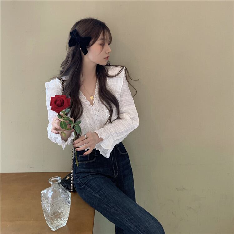✞ 白シャツブラウス大人女子☆♡レーストップス ホワイト スウィート ✞ゴスロリ SM ミリ 甘ロリ クラロリ 和ロリ エレガント 黒ロリ 姫ロリ 華ロリ BB-BB82459158500