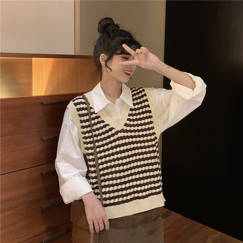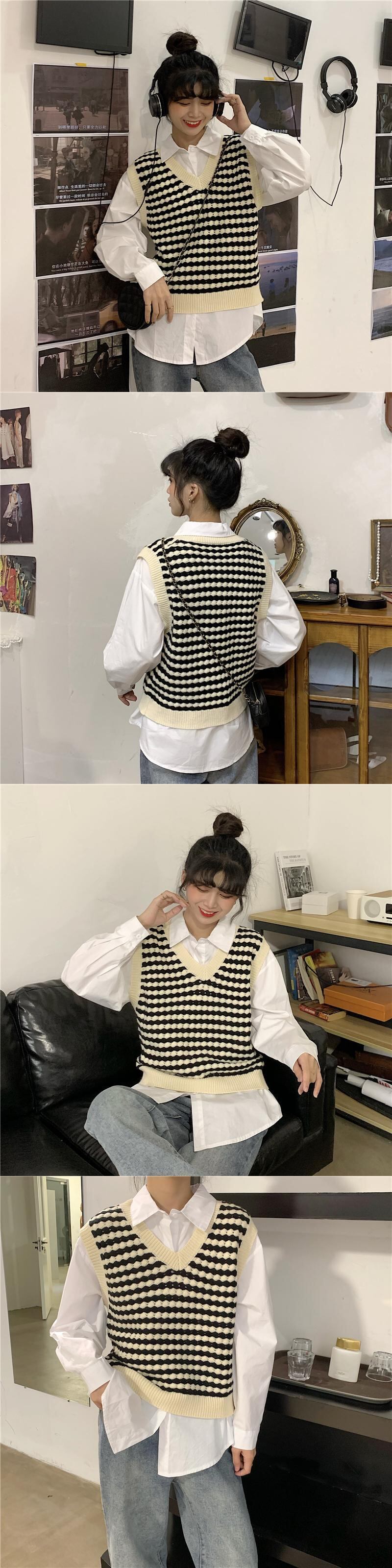 ✞ スタンダードストライプニット♥カワイイ♥ノースリーブカジュアルVネックセーター レトロ ✞ゴスロリ SM ミリ 甘ロリ クラロリ 和ロリ エレガント 黒ロリ 姫ロリ 華ロリ BB-BB35156120474
