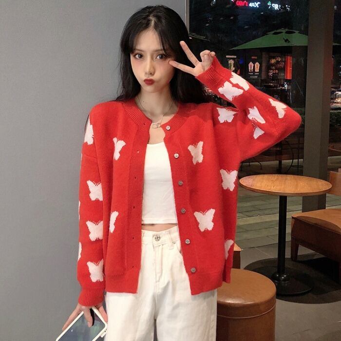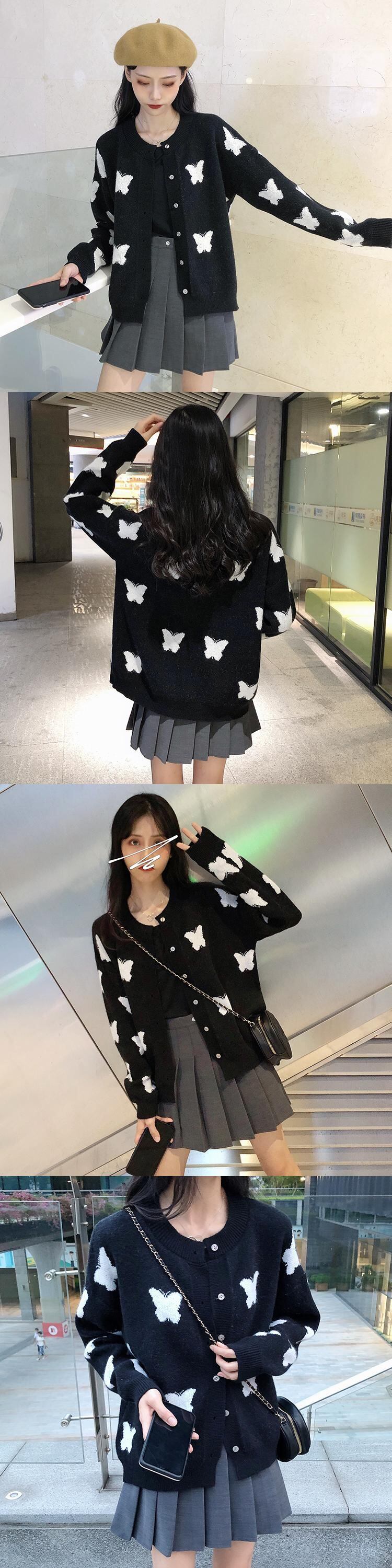 ✞ オータムButterflyデザイン ジャカードセーター 大人女子☆長袖スリーブニットジャケット ロング 秋物 ✞ゴスロリ SM ミリ 甘ロリ クラロリ 和ロリ エレガント 黒ロリ 姫ロリ 華ロリ BB-BB65130858505