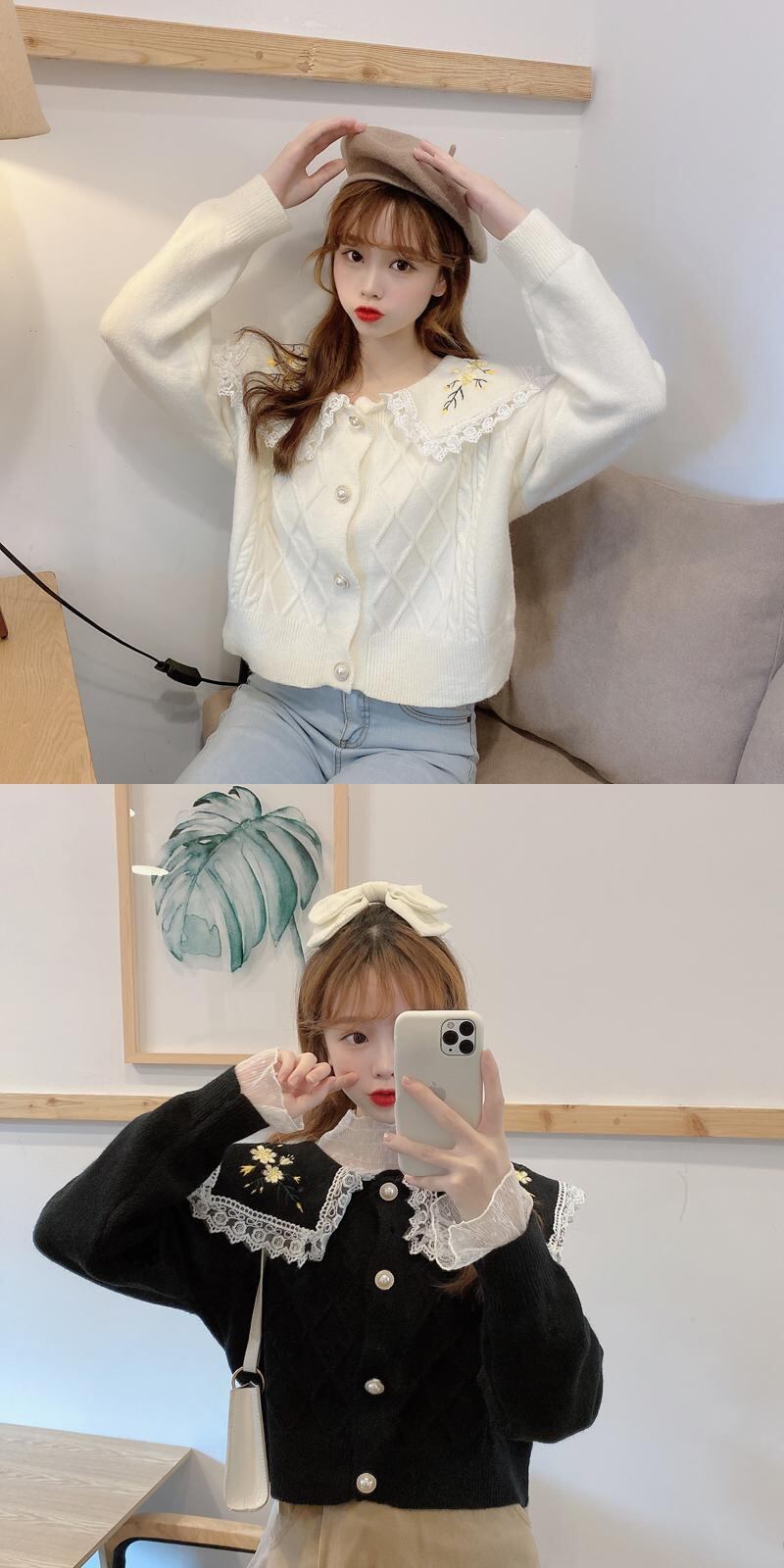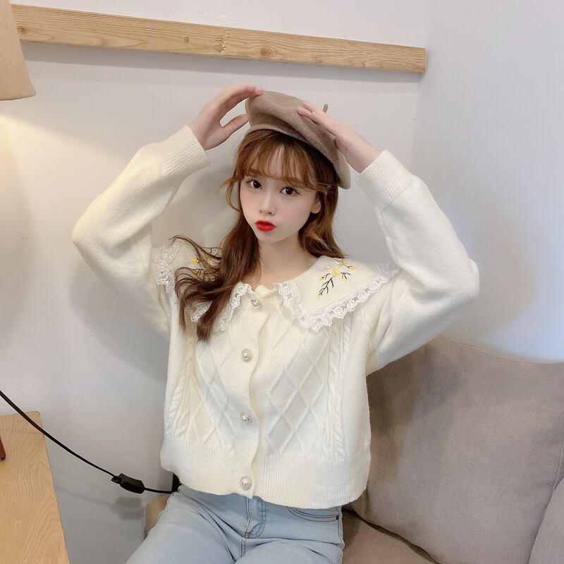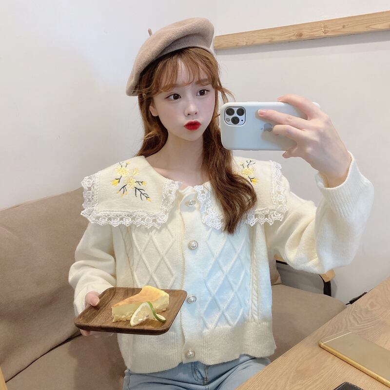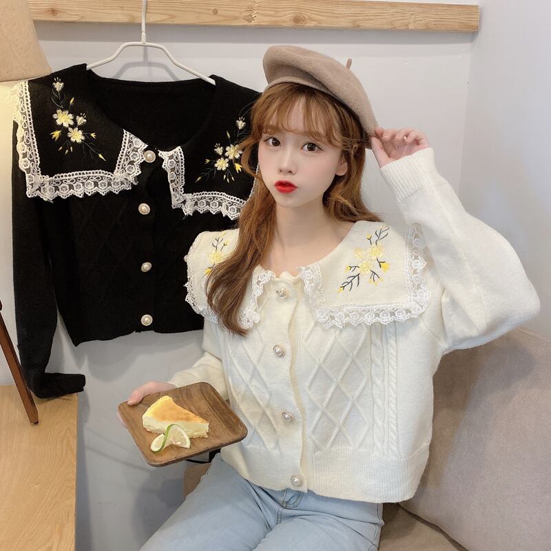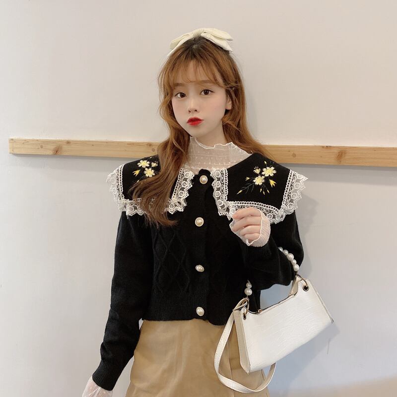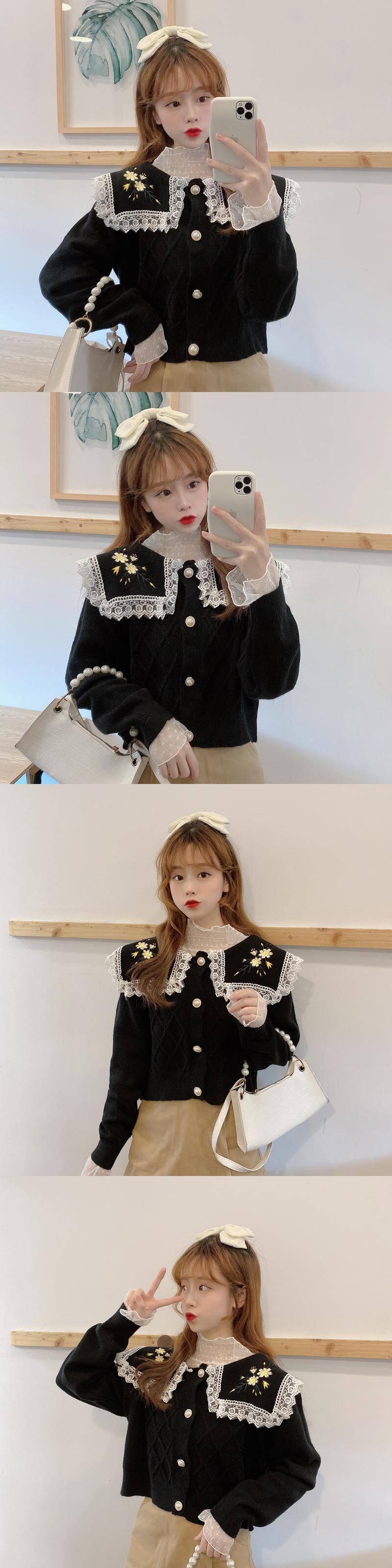 ✞ 花柄刺繍レースネイビーカーディガンニットセーター ジャケット 大人女子☆ ロング スウィート フラワーデザイン ✞ゴスロリ SM ミリ 甘ロリ クラロリ 和ロリ エレガント 黒ロリ 姫ロリ 華ロリ BB-BB2127654434