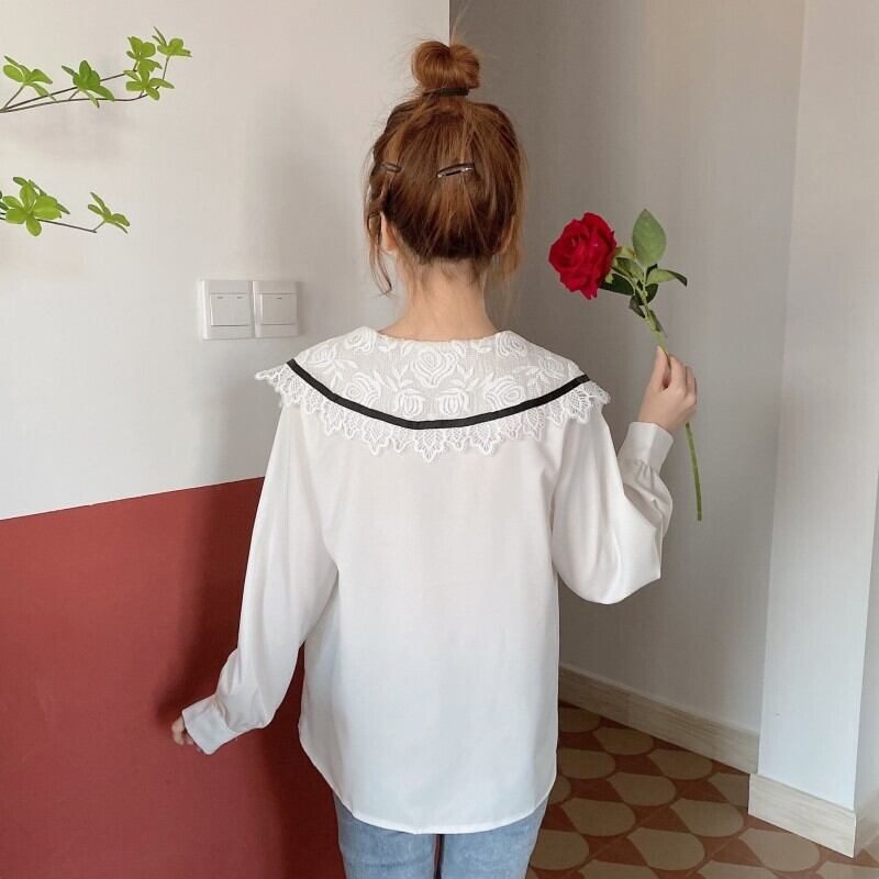 ✞ レースシャツブラウスリボン白 ロング ホワイト スウィート ✞ゴスロリ SM ミリ 甘ロリ クラロリ 和ロリ エレガント 黒ロリ 姫ロリ 華ロリ BB-BB66360450504