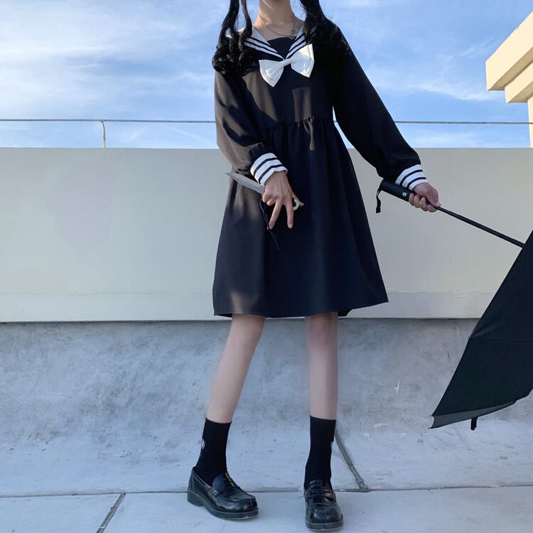 ✞ ♡リボンネイビー♥カワイイ♥ブラック ロング スウィート ✞ゴスロリ SM ミリ 甘ロリ クラロリ 和ロリ エレガント 黒ロリ 姫ロリ 華ロリ BB-BB851383132