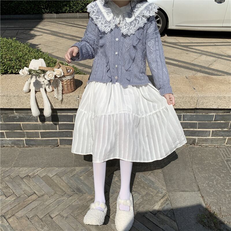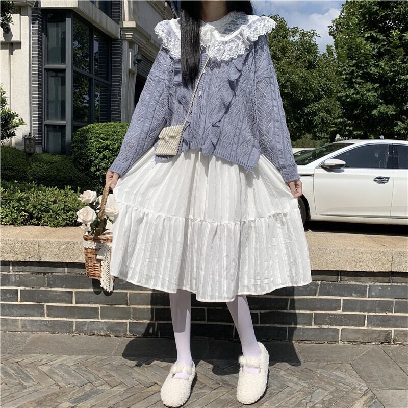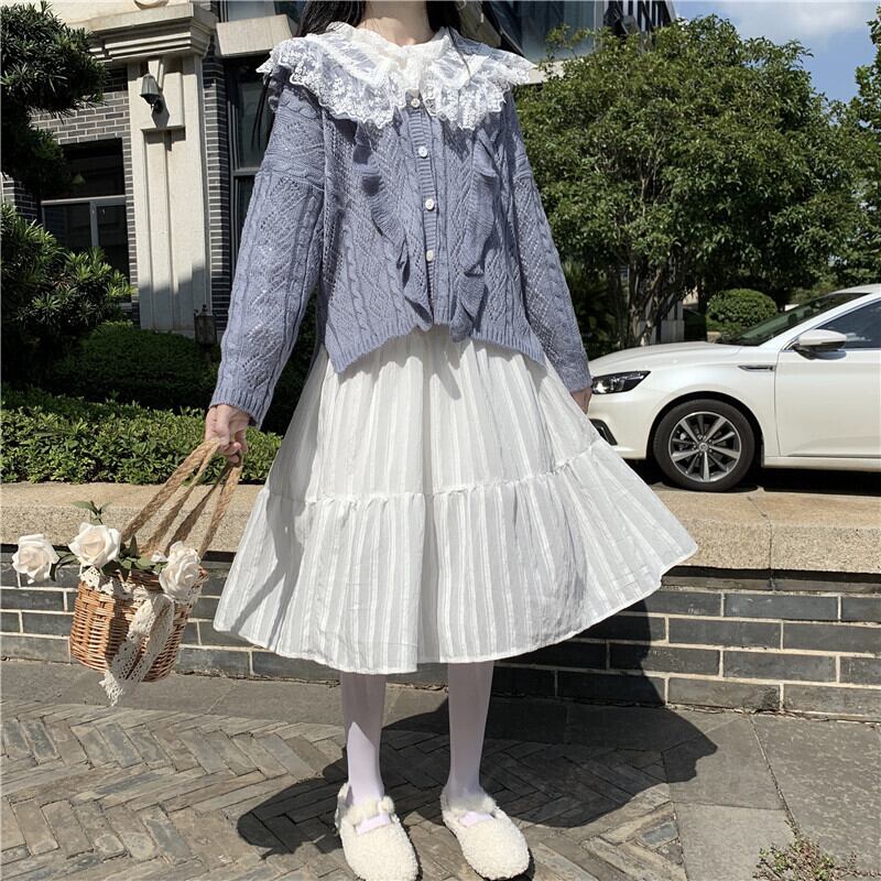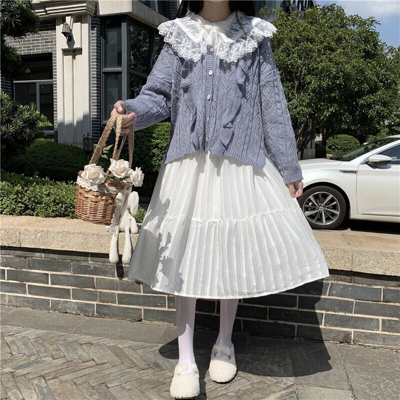 色:ワンピースの中の白いレース,ブルーグレーセーターコートシングル