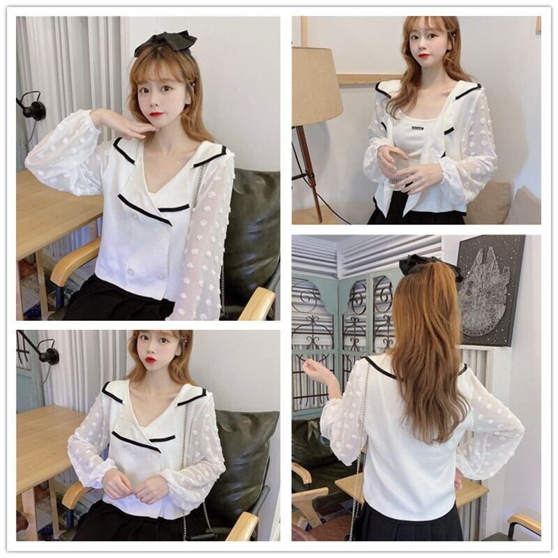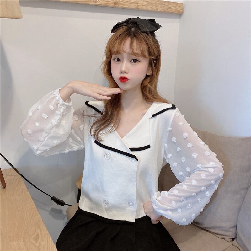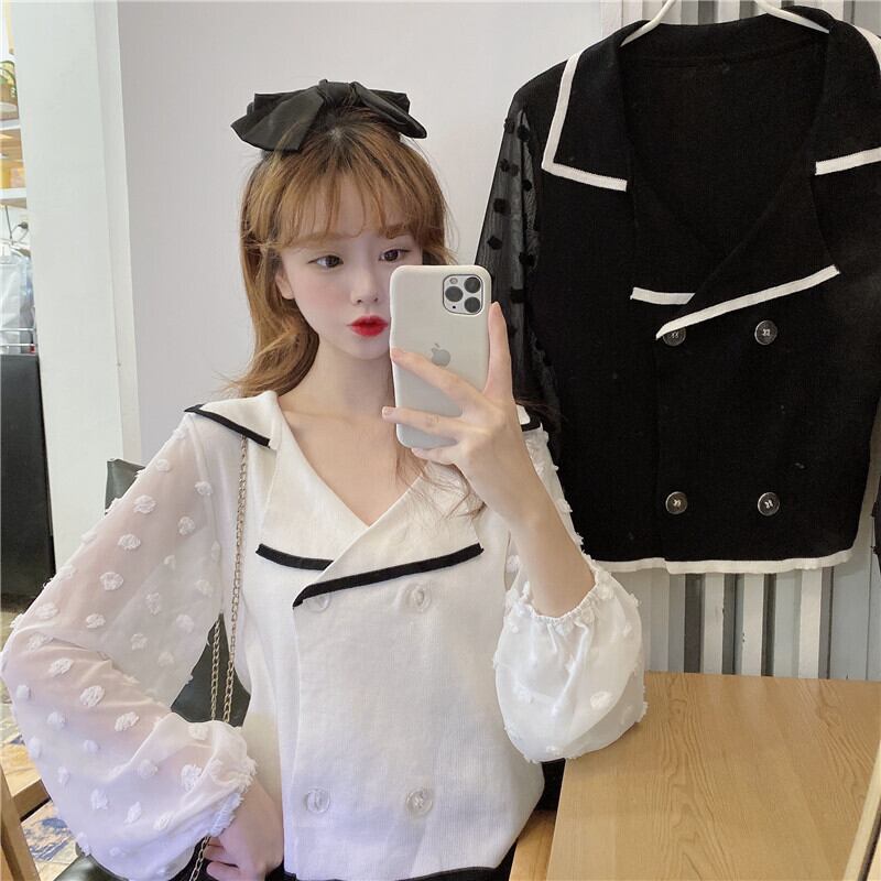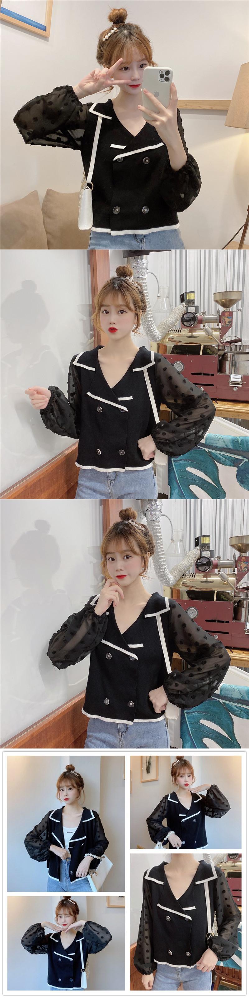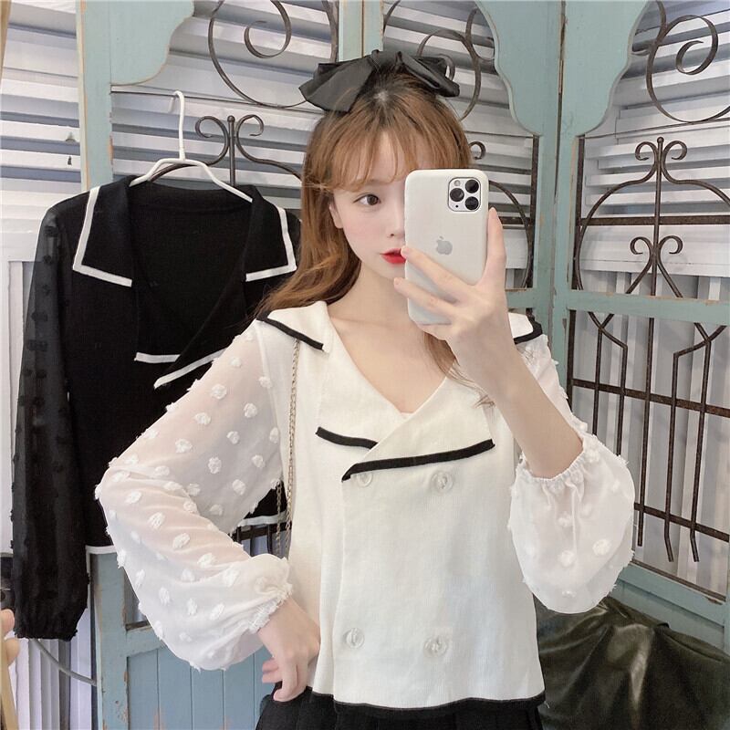 ✞ スリーブシフォンシャツブラウスVネックダブルブレストショートニットセーター ロング スウィート ステッチ ✞ゴスロリ SM ミリ 甘ロリ クラロリ 和ロリ エレガント 黒ロリ 姫ロリ 華ロリ BB-BB19383852483