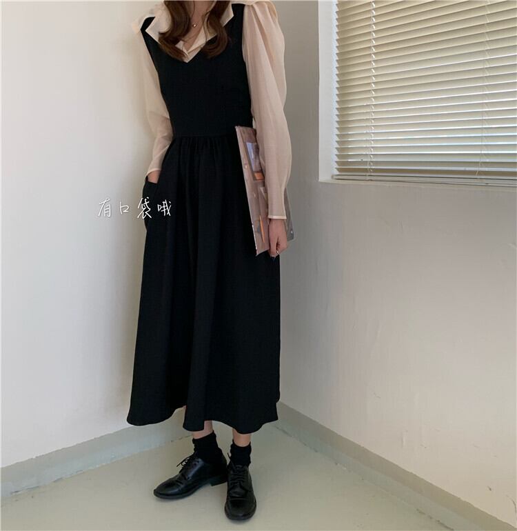 ✞ブラックVネックノースリーブバックワンピ or チュールシフォンシャツブラウス ✞ゴスロリ SM ミリ 甘ロリ クラロリ 和ロリ エレガント 黒ロリ 姫ロリ 華ロリ BB-BB92130659175