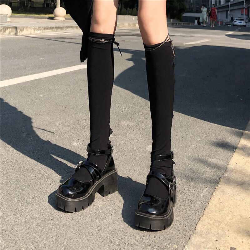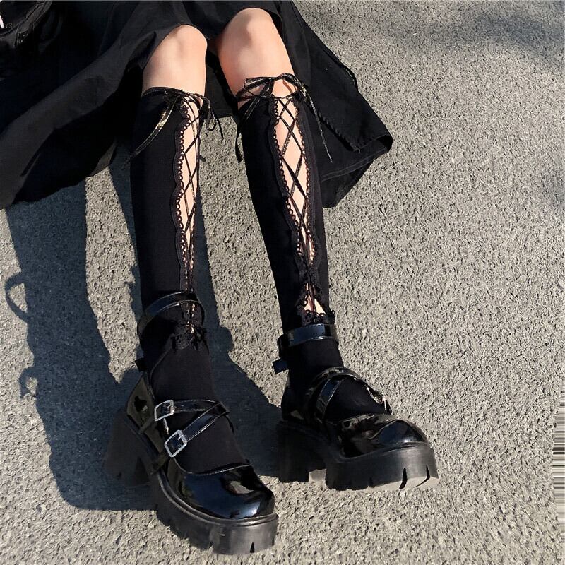 ✞ クロスストラップ ソックス スウィート タイツ ストッキング ✞ゴスロリ SM ミリ 甘ロリ クラロリ 和ロリ エレガント 黒ロリ 姫ロリ 華ロリ BB-BB90963023635