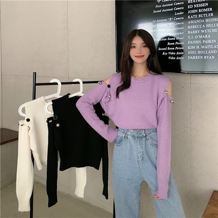 ✞ セーター プルオーバー ラウンドネックニットトップス ロング スウィート オフショルダー ✞ゴスロリ SM ミリ 甘ロリ クラロリ 和ロリ エレガント 黒ロリ 姫ロリ 華ロリ BB-BB33889929959