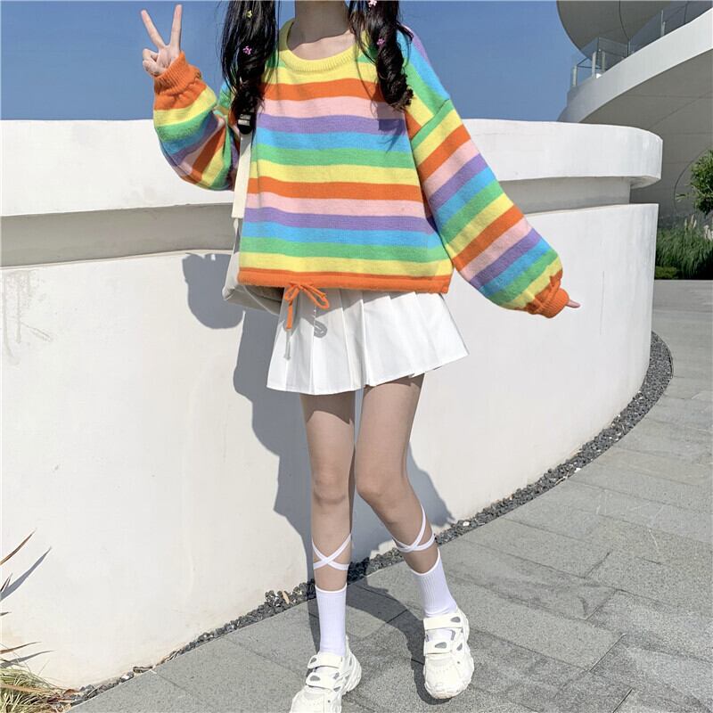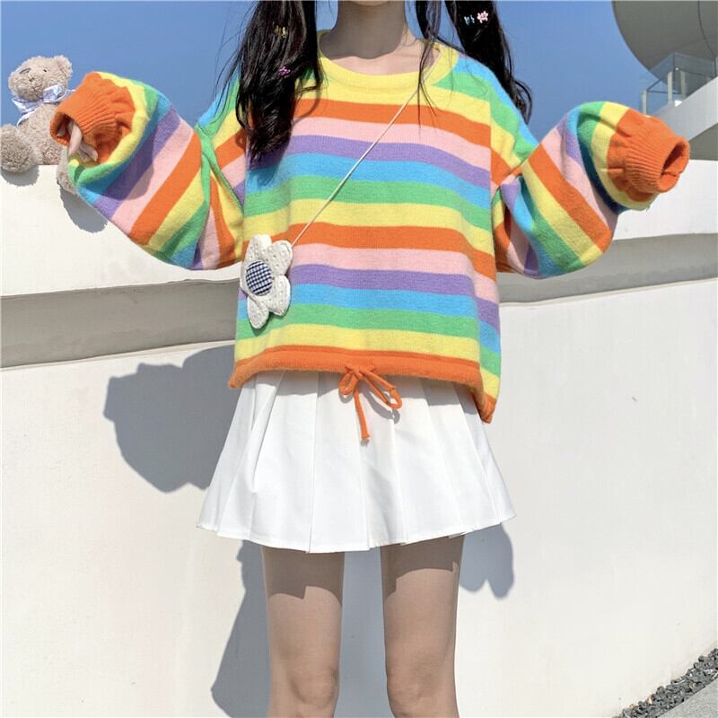 ✞ ♡セーター 大人女子☆ストライプギャザーショートニットトップス ロング スウィート ✞ゴスロリ SM ミリ 甘ロリ クラロリ 和ロリ エレガント 黒ロリ 姫ロリ 華ロリ BB-BB68648719302