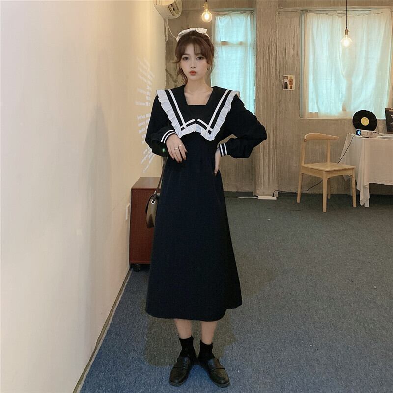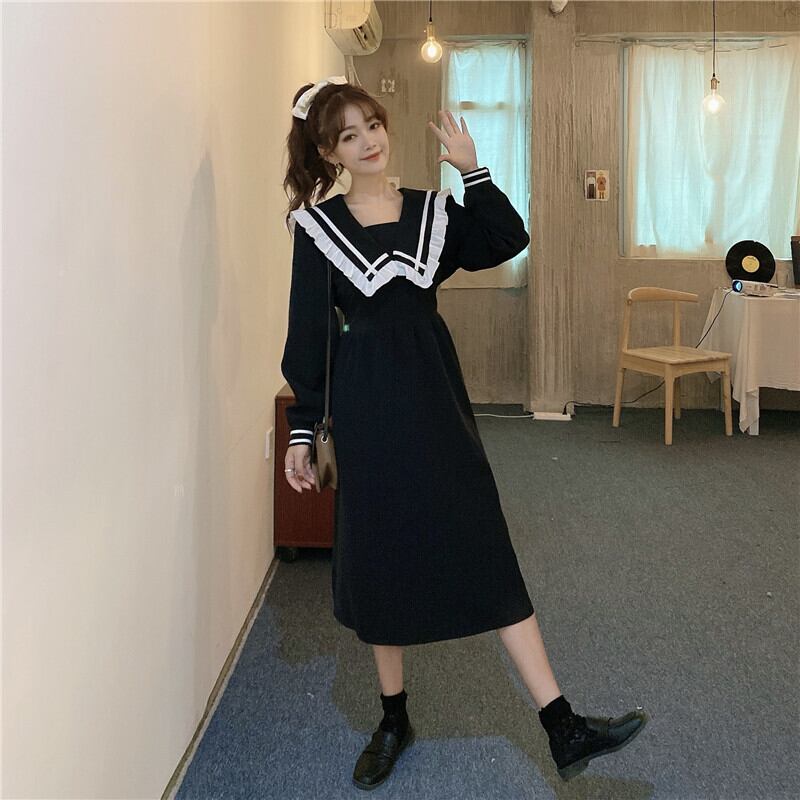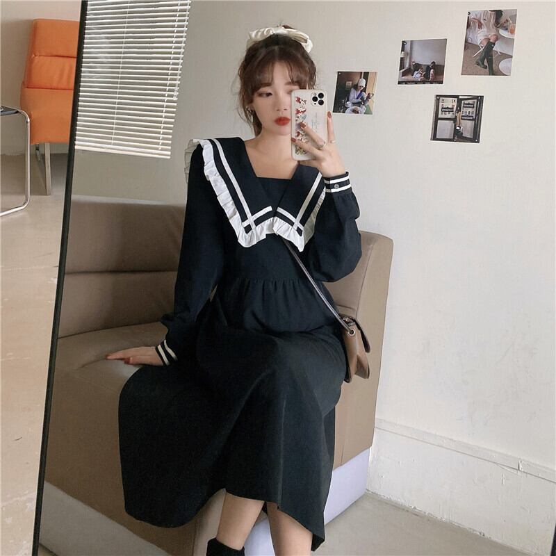 ✞ ♡ネイビーブラックスタンダードレース長袖スリーブスカート ロング レトロ スウィート ✞ゴスロリ SM ミリ 甘ロリ クラロリ 和ロリ エレガント 黒ロリ 姫ロリ 華ロリ BB-BB7333454535