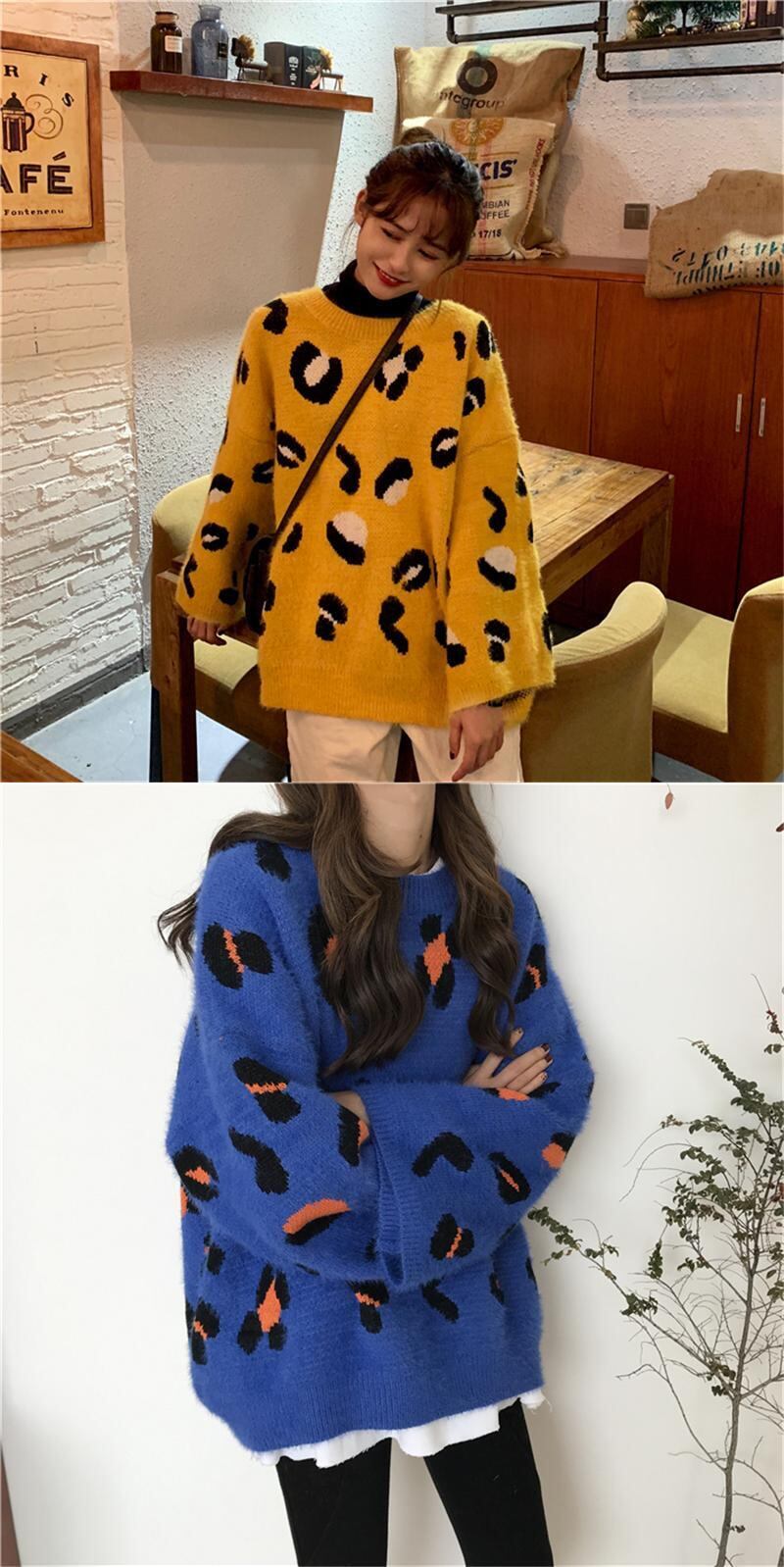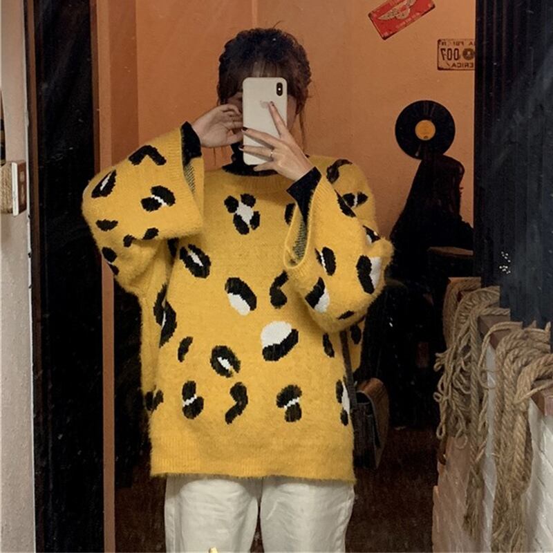 ✞ スタンダードレオパードプリント柄プルオーバー カジュアルジャケット ラウンドネックニットセーター 大人女子☆ ロング レトロ ✞ゴスロリ SM ミリ 甘ロリ クラロリ 和ロリ エレガント 黒ロリ 姫ロリ 華ロリ BB-BB97415769557