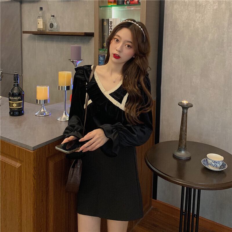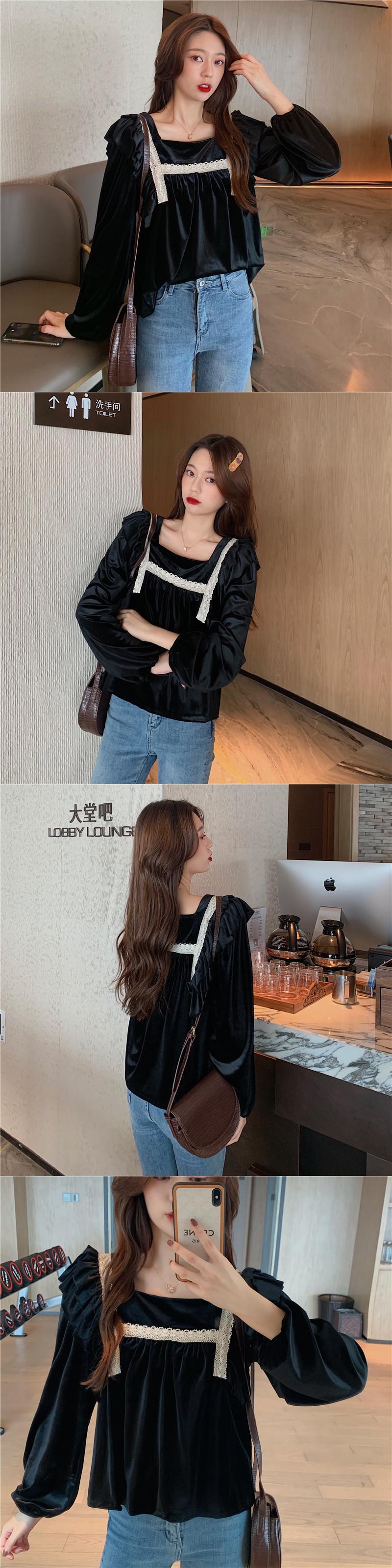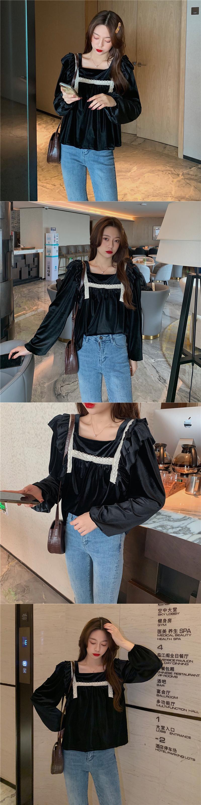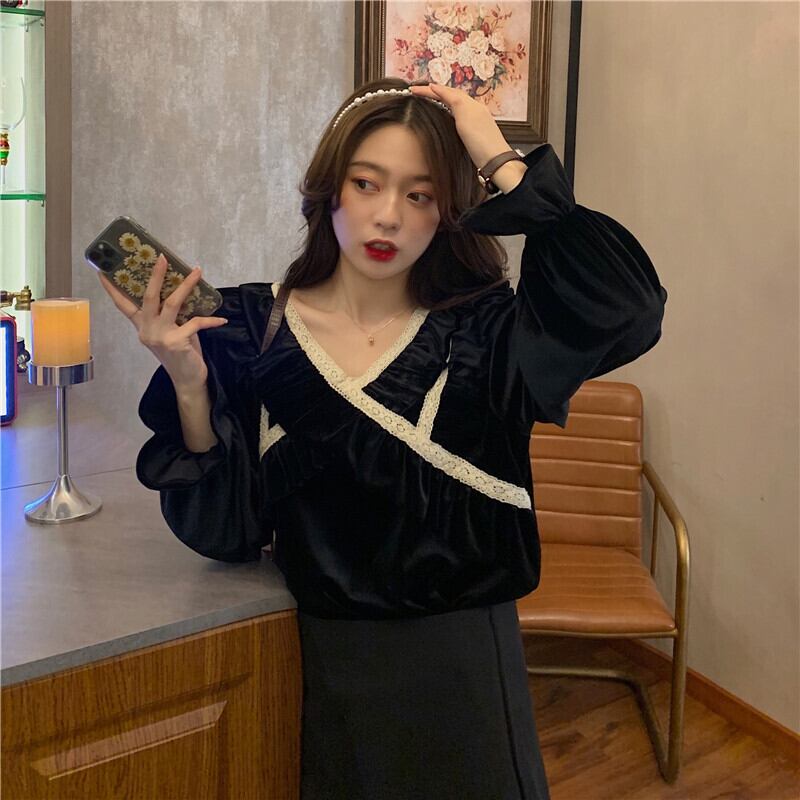 ✞ スタンダードレースVネックベルベットシャツブラウス♡スリム ロング レトロ スウィート ✞ゴスロリ SM ミリ 甘ロリ クラロリ 和ロリ エレガント 黒ロリ 姫ロリ 華ロリ BB-BB2307242767