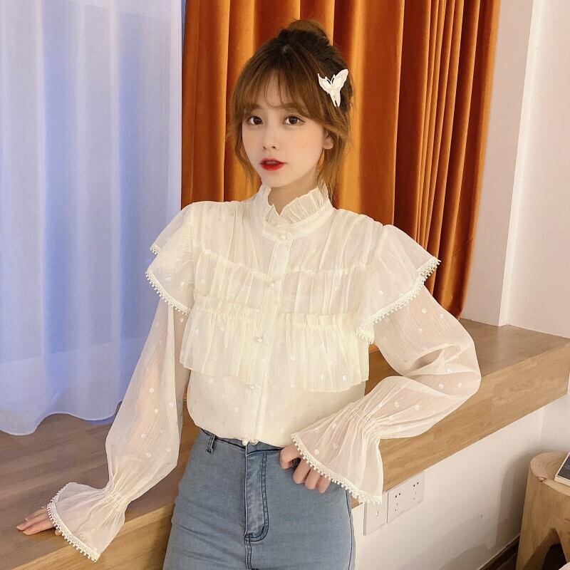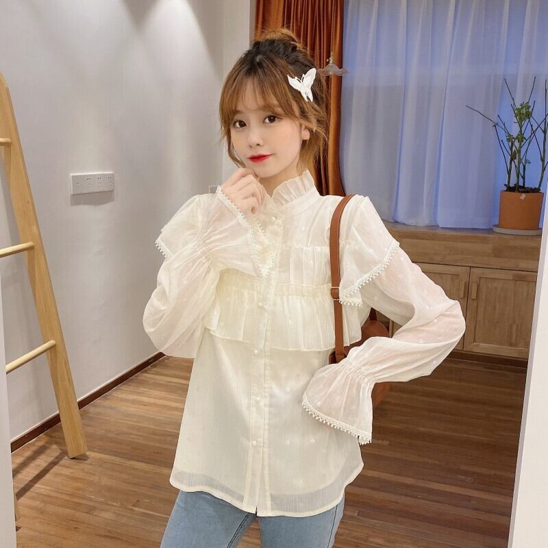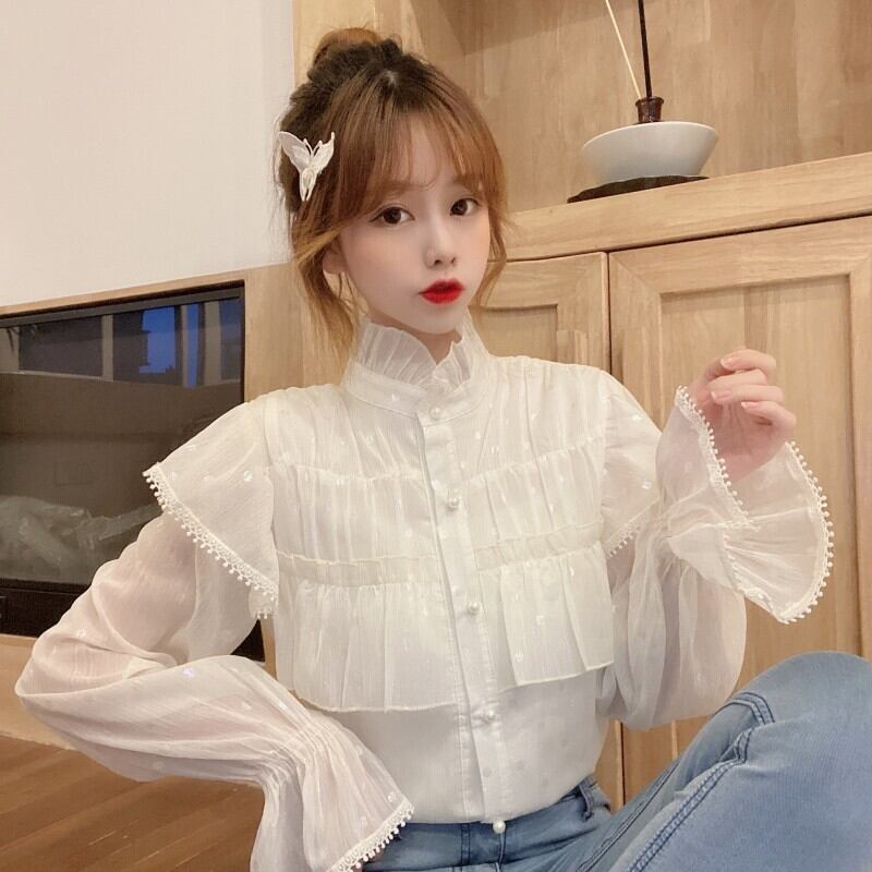 ✞ スリーブシフォンシャツブラウス長袖白 ロング ホワイト スウィート ✞ゴスロリ SM ミリ 甘ロリ クラロリ 和ロリ エレガント 黒ロリ 姫ロリ 華ロリ BB-BB19647507801