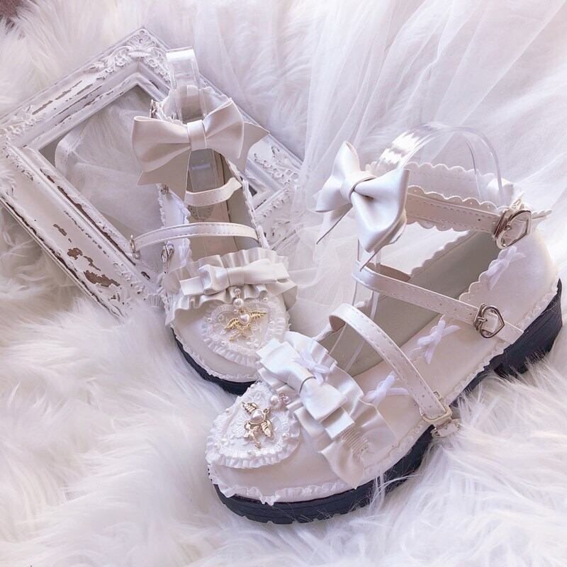✞✝✞ ハートリボン 靴 シューズ スウィート ✞✝✞ゴスロリ SM ミリ 甘ロリ クラロリ 和ロリ エレガント 黒ロリ 姫ロリ 華ロリ DD-DD32054977889