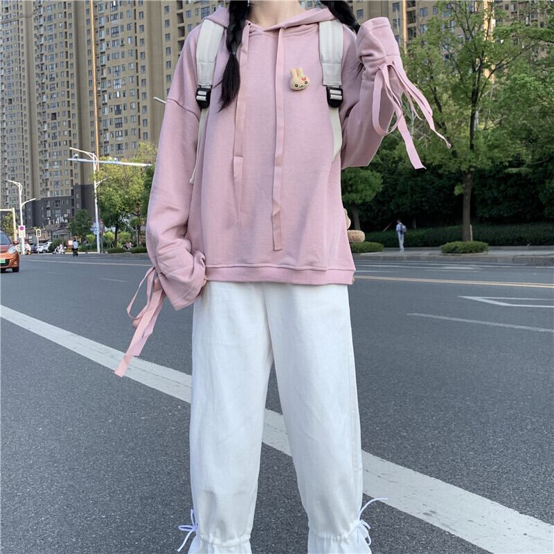 色:ピンクのセーターシングル,白パンツワンピース