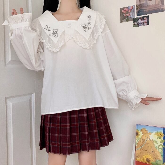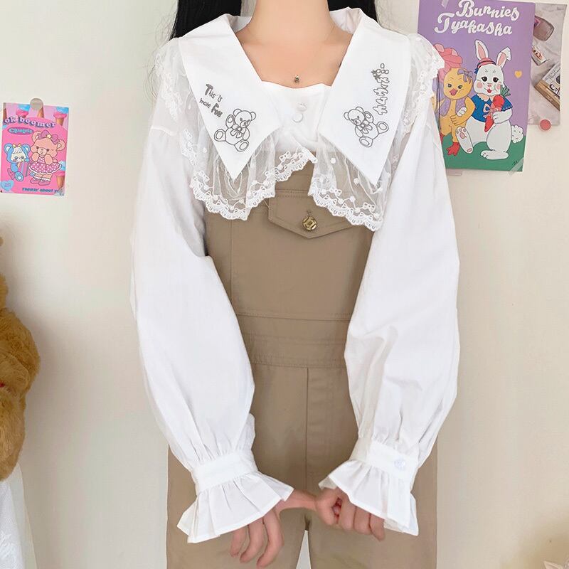 ✞ シャツブラウス刺繍 ロング スウィート ガーリー ✞ゴスロリ SM ミリ 甘ロリ クラロリ 和ロリ エレガント 黒ロリ 姫ロリ 華ロリ BB-BB25493981493