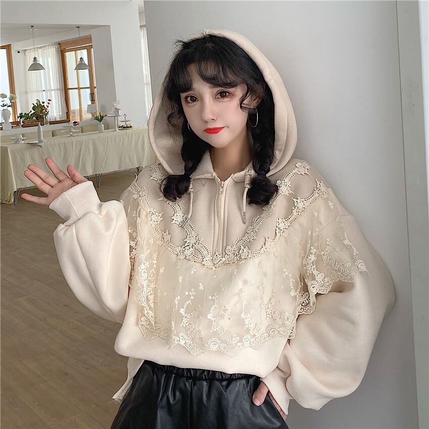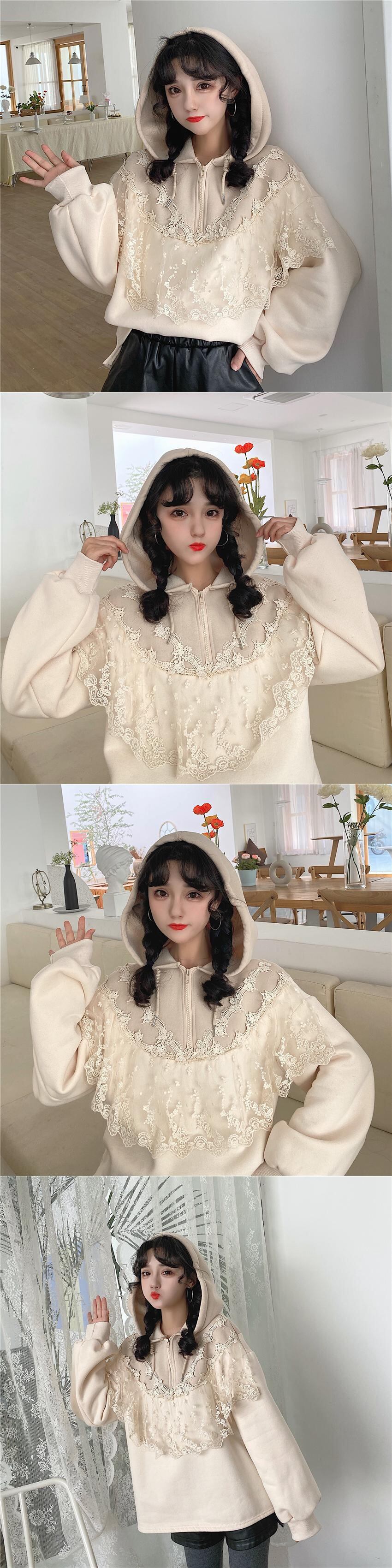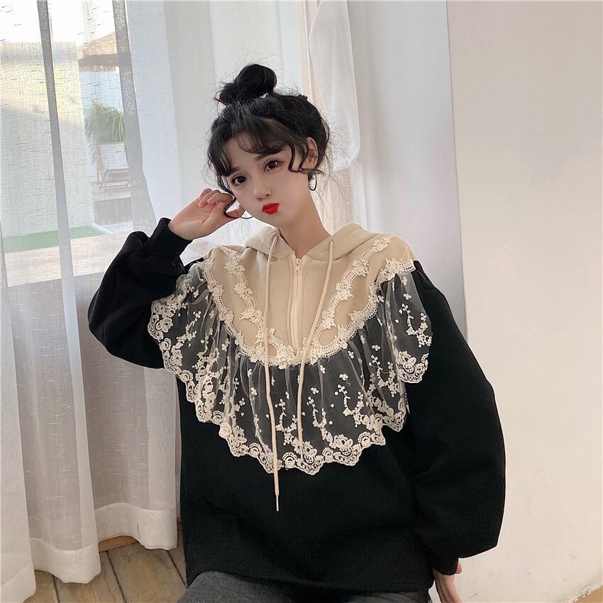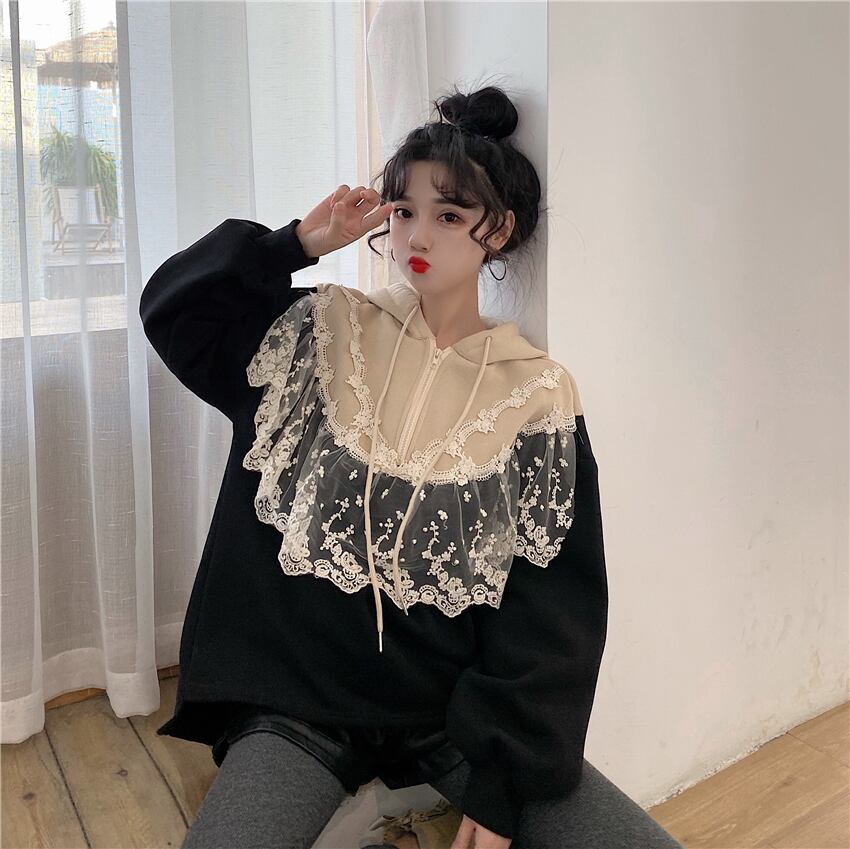 ✞レースベルベットフーディープルオーバー シャツブラウス♡フードプルオーバー セーター ロング スウィート ステッチ ✞ゴスロリ SM ミリ 甘ロリ クラロリ 和ロリ エレガント 黒ロリ 姫ロリ 華ロリ BB-BB36771728827