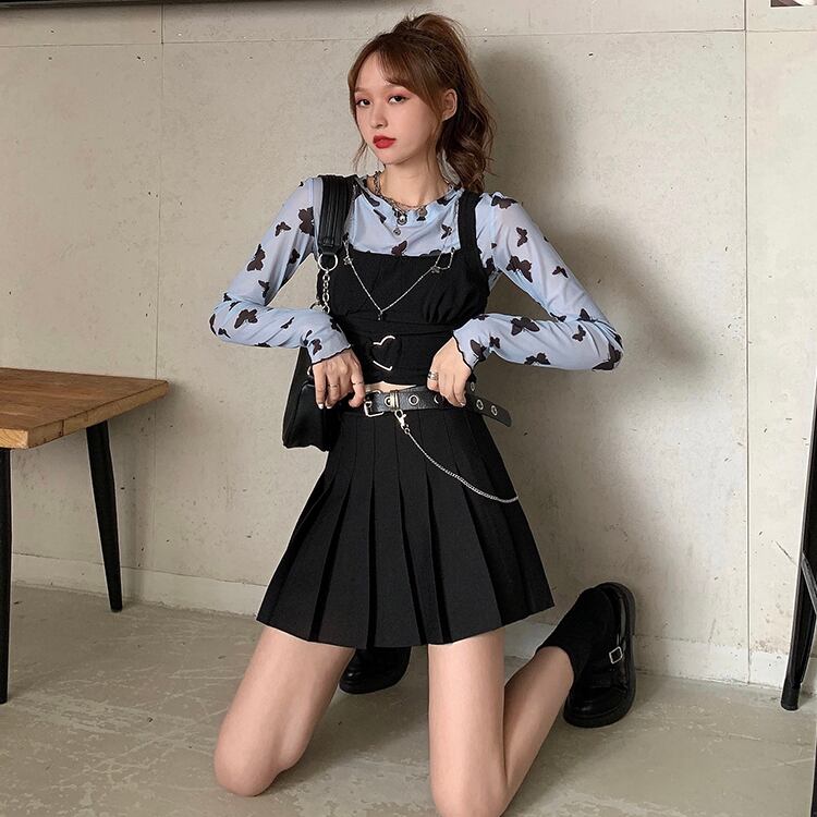 色:バタフライボトムスシャツワンピース,ブラックベストワンピース,プリーツスカートワンピース